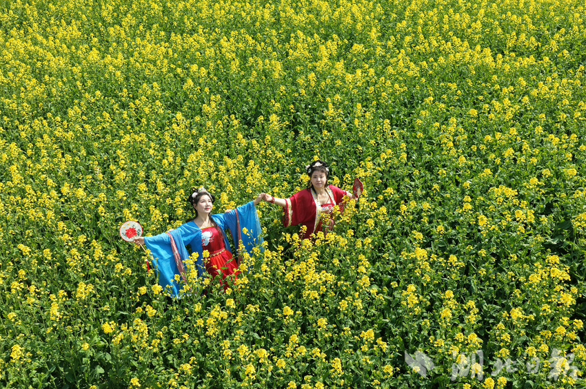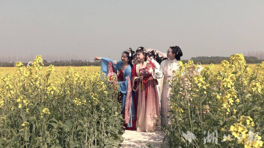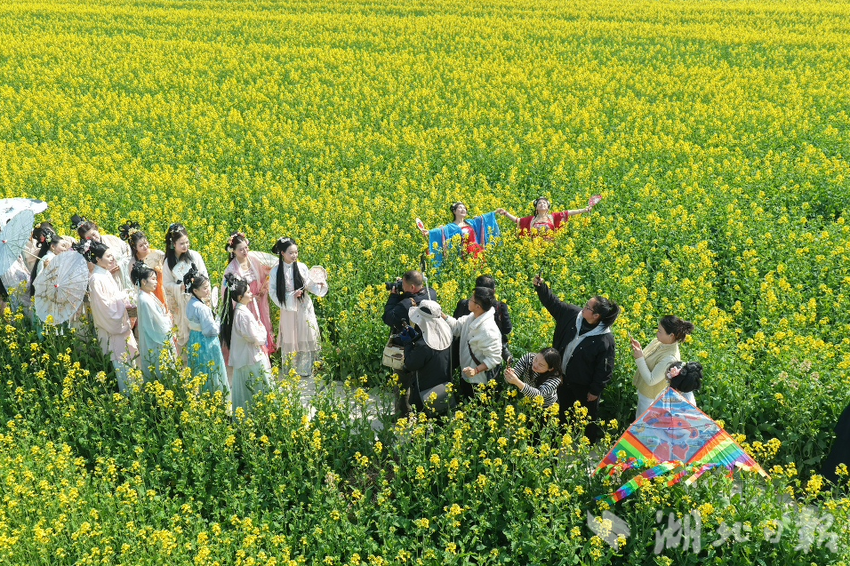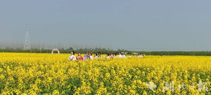 春有约,花不误。3月10日,新洲区涨渡湖街创新堤大队的千亩油菜花田迎来盛放期,金黄花浪随风起伏,花田核心观赏区人流如织。一场别开生面的“醉美油菜花,汉服绽芳华”主题活动正在这里举行。