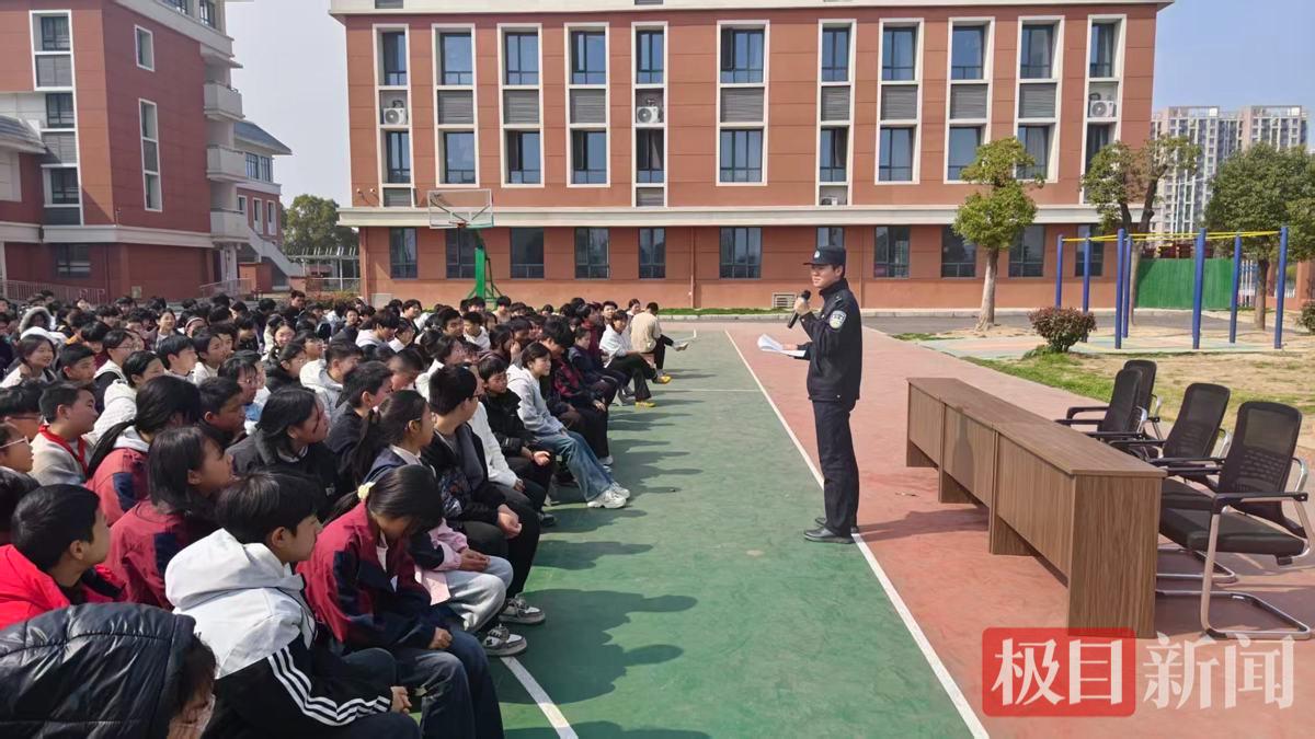 春日的阳光温柔地洒在操场上,同学们整齐列坐,目光炯炯地望向讲台。民警们身着笔挺的警服,用亲切的笑容拉近了与孩子们的距离。“同学们,你们知道吗?电信诈骗可能就藏在一个陌生链接里”“违规骑行电动车,危险可能就在下一秒”民警们结合辖区真实发生的案例,用孩子们听得懂、记得住的语言,将反诈防骗、交通安全、校园欺凌防范、禁毒知识四大主题娓娓道来。