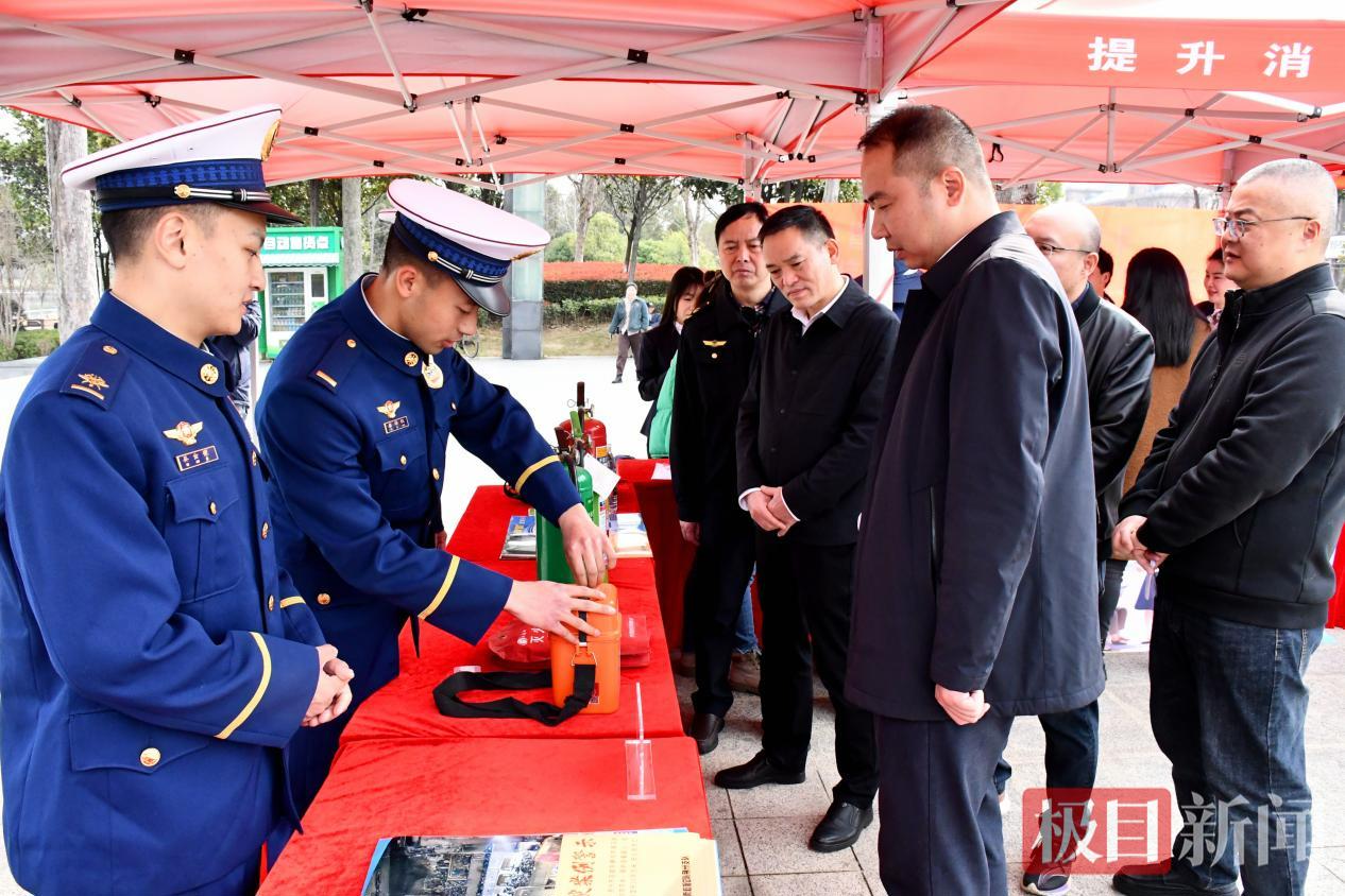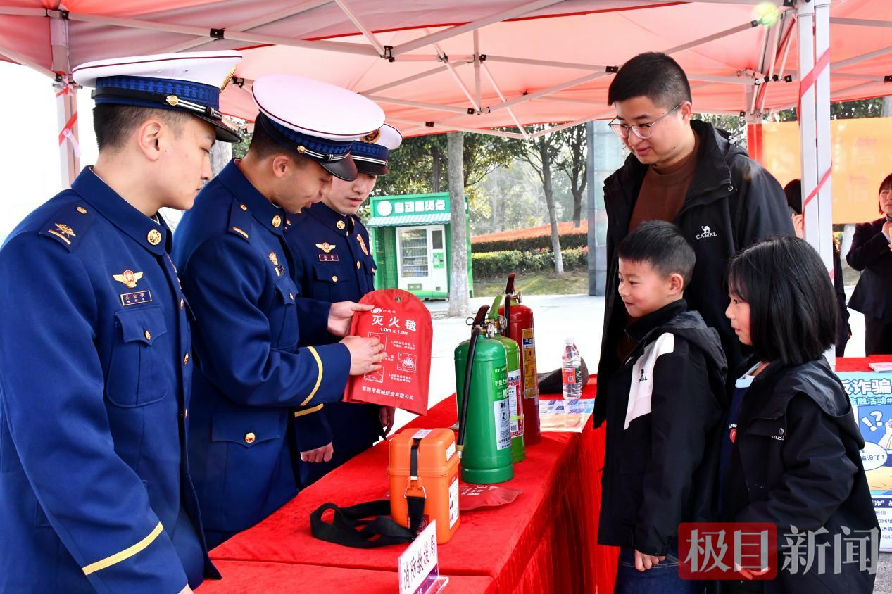 活动现场,石首市消防大队设立了消防知识宣传咨询台,消防宣传员带来干货满满的消防安全和产品防伪知识。现场展示了图文并茂的消防安全知识展板,将灭火器、灭火毯、消防自救呼吸器等各类常用消防产品从“幕后”搬到了“台前”,吸引当地群众参与互动体验。