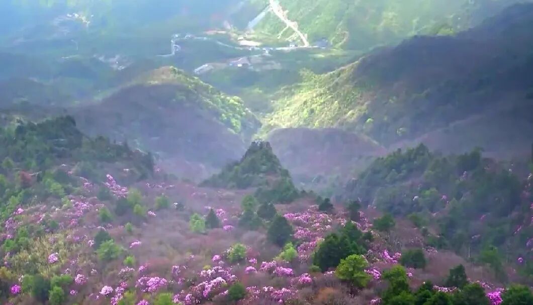 英山天马寨景区:英山的天马寨海拔高,温差大,杜鹃花由下而上从三月底到五月初,树挨树,枝连枝,梯次开放,花期可长达60天。