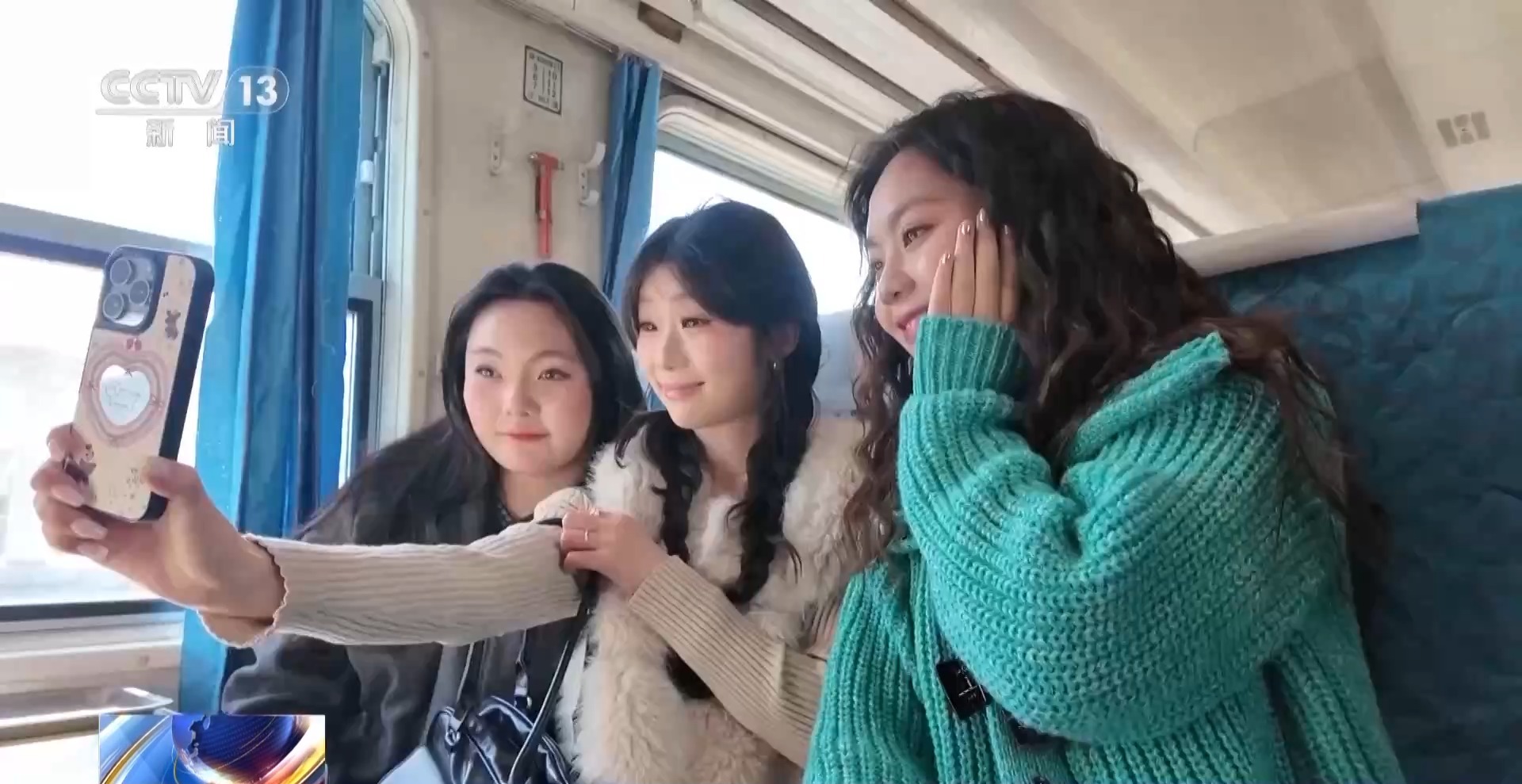 车厢内,绿皮火车的连体硬座、蓝色座椅套等复古元素,给游客带来不一样的体验。