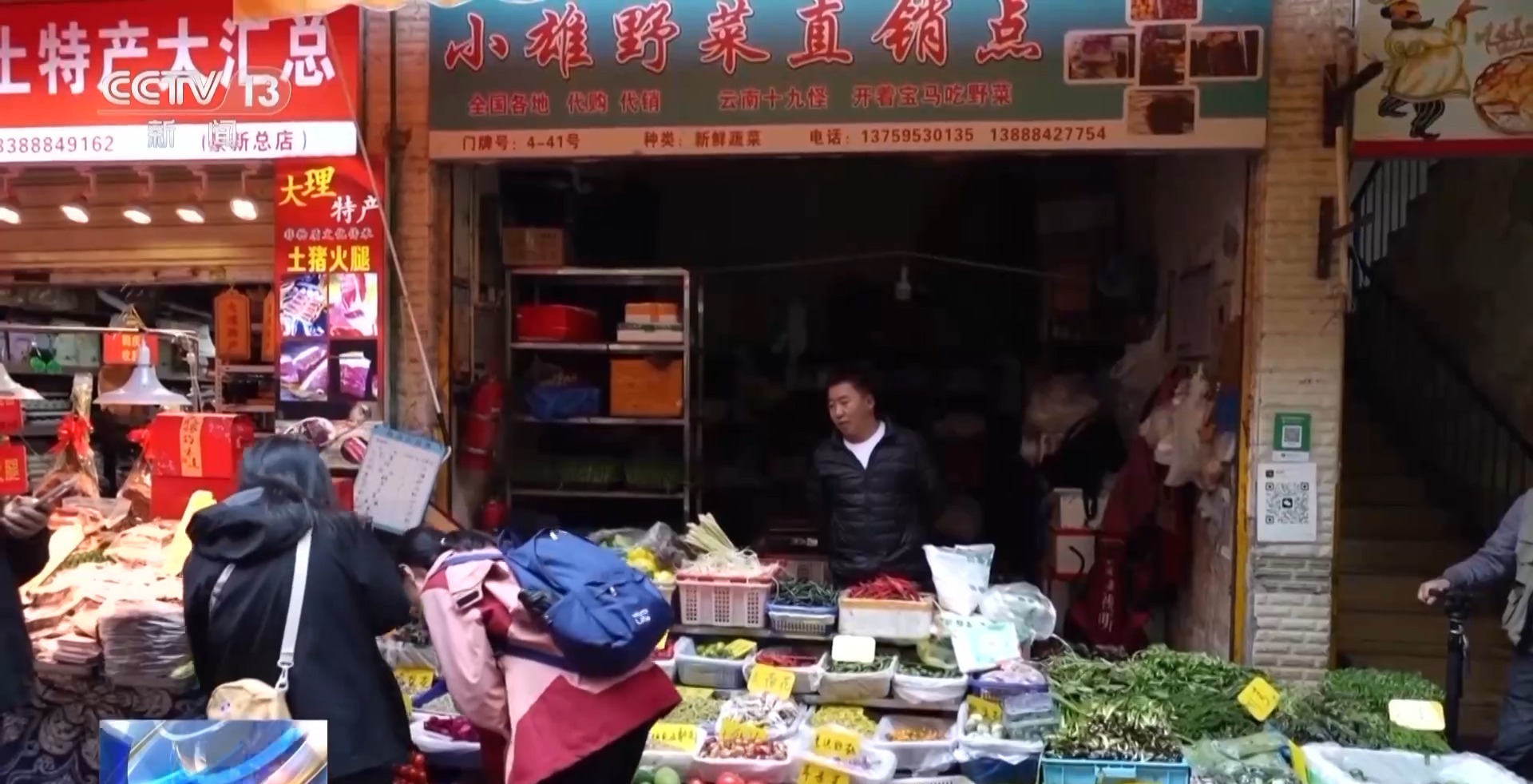 总台记者 郭思琪:一走进菜市场,扑面而来的就是各种美食的香味儿,道路两边都有很多地道的滇味小吃。