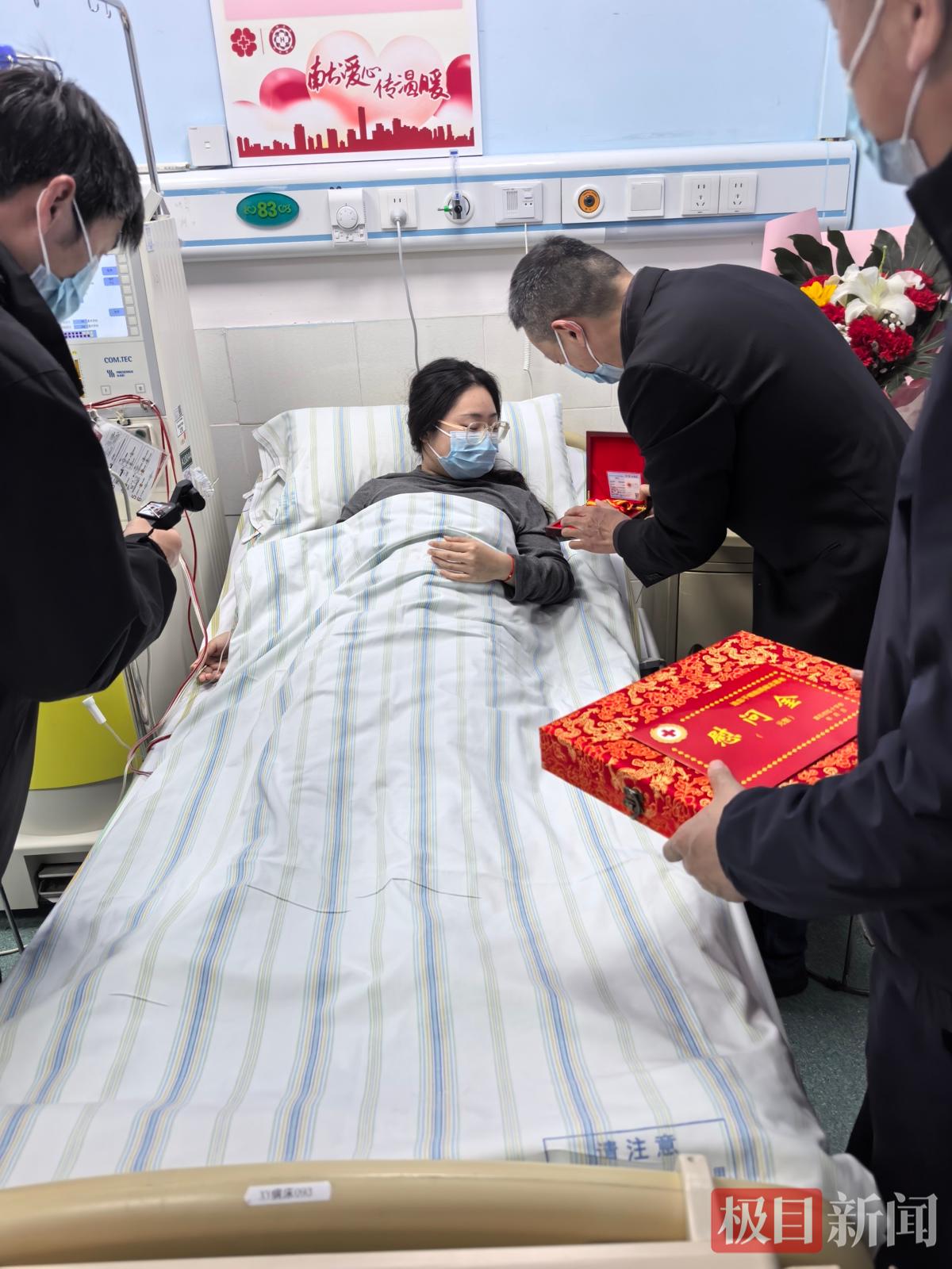 郑海芳在医院接受捐赠
