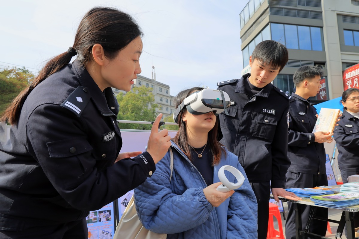 特别值得关注的是,咸宁市公安局咸安区分局与咸宁市强制隔离戒毒所联合打造的禁毒宣传专区成为现场“网红打卡点”。专区通过毒品仿真模型展示、真实案例讲解、互动体验等形式普及禁毒知识,尤其是配备的VR禁毒体验器,吸引了大量市民排队体验。戴上VR设备后,市民可直观感受吸毒后出现的视觉扭曲、听觉错乱、平衡失调等感官反应,深刻体会毒品对人体的严重危害。“太震撼了!眼前的画面天旋地转,走路都站不稳,真切感受到了毒品的可怕。”刚体验完的市民张先生摘下设备仍心有余悸,他表示会把今天的体验和学到的禁毒知识分享给家人朋友,提醒大家远离毒品。现场民警还向市民讲解了伪装成奶茶包、邮票贴纸等日常物品的新型毒品辨别技巧,发放禁毒宣传手册,引导群众筑牢防毒拒毒思想防线。