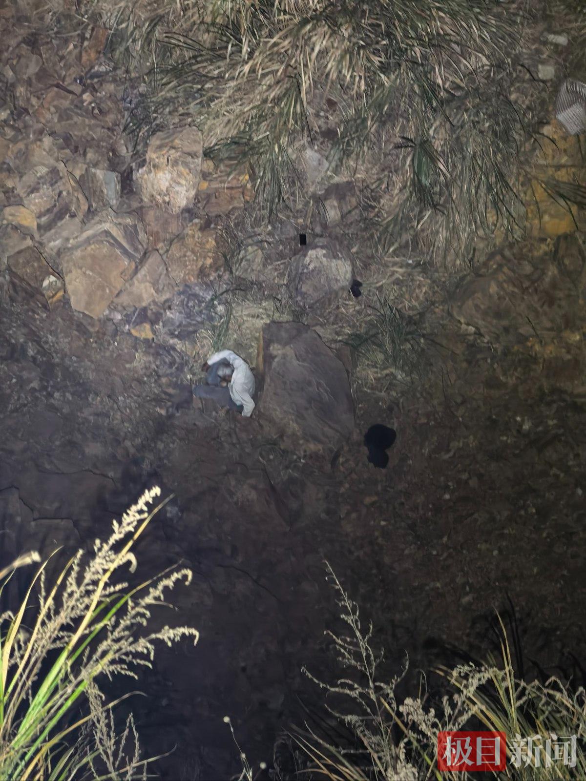 民警与巡特警迅速赶赴目标区域,徒步翻越多处沟坎,用强光手电远距离照射确认:张爹爹蜷缩在数十米深的深坑底部,仅穿着单薄秋衣,随身携带的棉外套被弃于附近,明显存在失温风险,且腰部、头部还有多处皮外伤,情况危急。