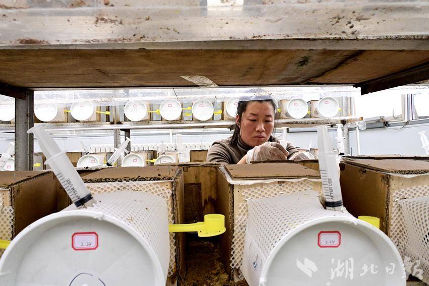 湖北日报客户端讯(通讯员王涛)3月15日,在位于十堰市郧阳区柳陂镇高岭村的郧阳胡蜂培育基地温室大棚里,工作人员正在饲喂胡蜂蜂王。