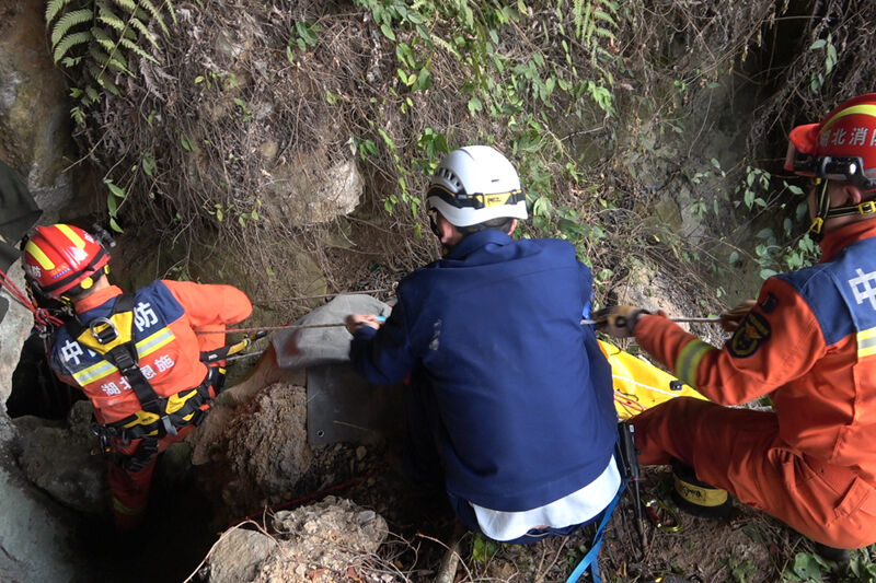 消防救援人员抵达现场后,经现场勘查确认:事发洞穴地处半山腰凹槽位置,被困人员坠落的洞口狭窄,宽度约1米,洞穴整体深度近百米。该男子坠落至洞内一处平台,距洞口约20米,意识清醒、生命体征平稳。但洞内乱石密布、岩壁陡峭湿滑,无任何可供攀爬的受力支点,垂直落差大,被困人员无法自主攀爬脱险。