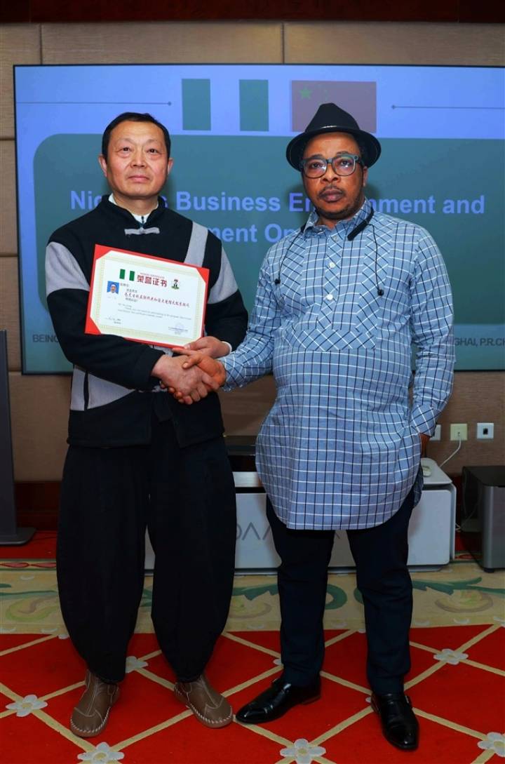徐龙(左)受聘为尼日利亚驻华大使馆太极拳顾问。