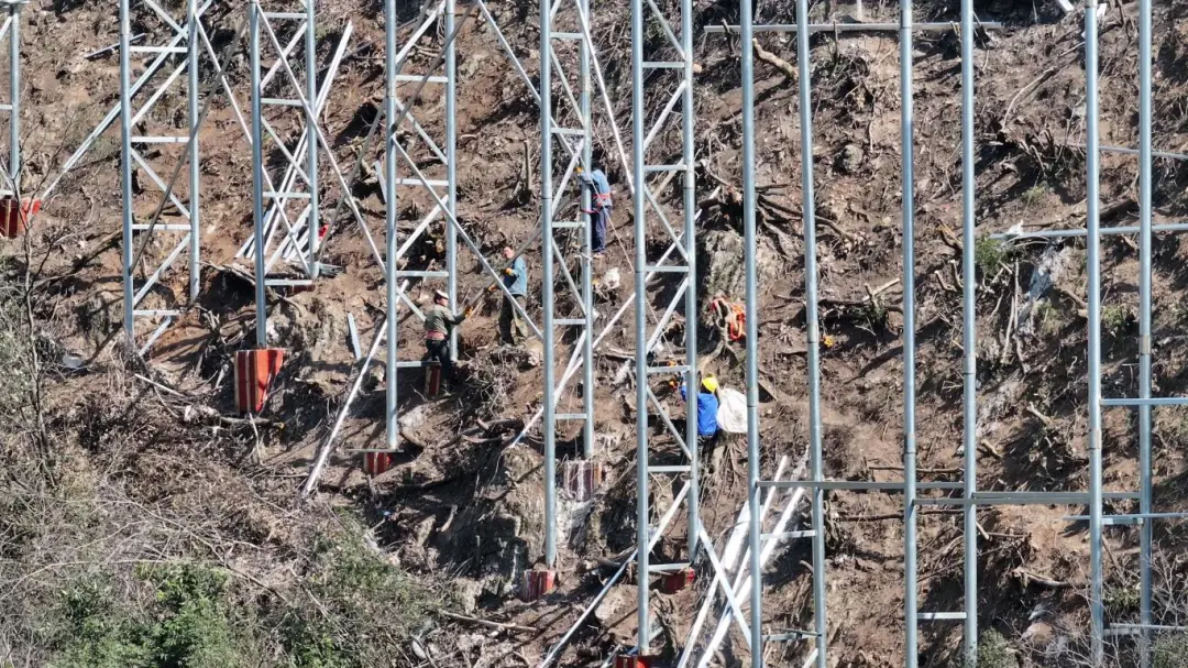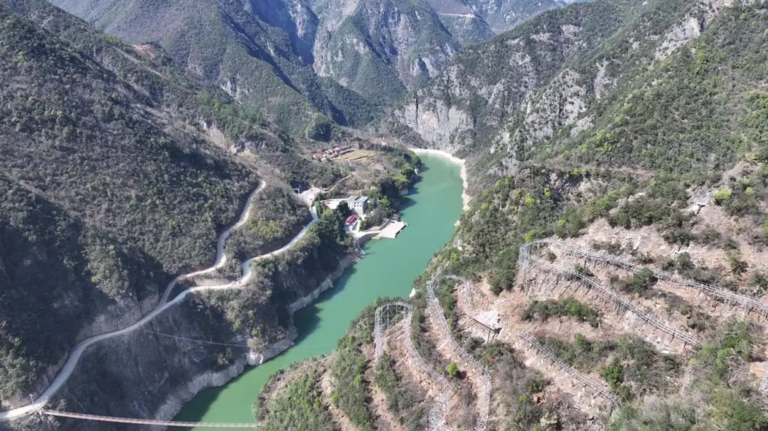 初春时节,万物复苏。马桥镇九里川水云涧康养度假区内,卷扬机平稳运转,建筑材料顺着山势有序吊运。银白色钢架沿峡谷山腰蜿蜒延伸,宛如巨龙盘踞山间。万米水滑玻璃栈道施工现场一派繁忙。