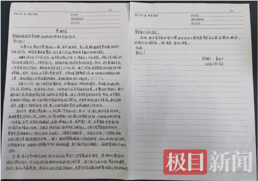 “感谢葛纯度警官不畏困难、持之以恒,他的专业与高效,给了我们极大帮助。”为表感激,张女士写下感谢信,向民辅警致以诚挚敬意。