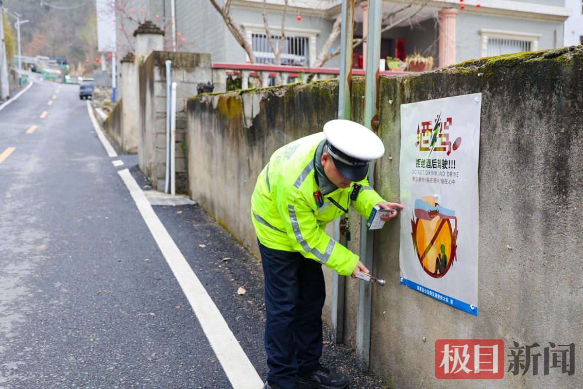 在村口、事故多发路段、文化广场等重点区域,民警悬挂“骑行安全最重要,安全头盔要戴好”“此路段事故多发,请减速观察谨慎通行”等警示横幅;在村务公开栏、小卖部、农家乐等人员密集场所,张贴以案释法的交通安全宣传海报,构建起“抬头可见、驻足即观”的乡村交通安全宣传阵地。