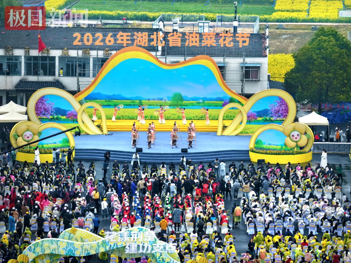 清凌凌的汉江水与古老神韵的楚简热情相拥,热烈欢快的歌曲《在希望的田野上》唱响万亩花海。3月18日上午,2026年湖北省油菜花节在荆门市沙洋县曾集镇张池村盛大开幕,八方游客踏春而来,共赴这场荆楚春日的金色盛宴。