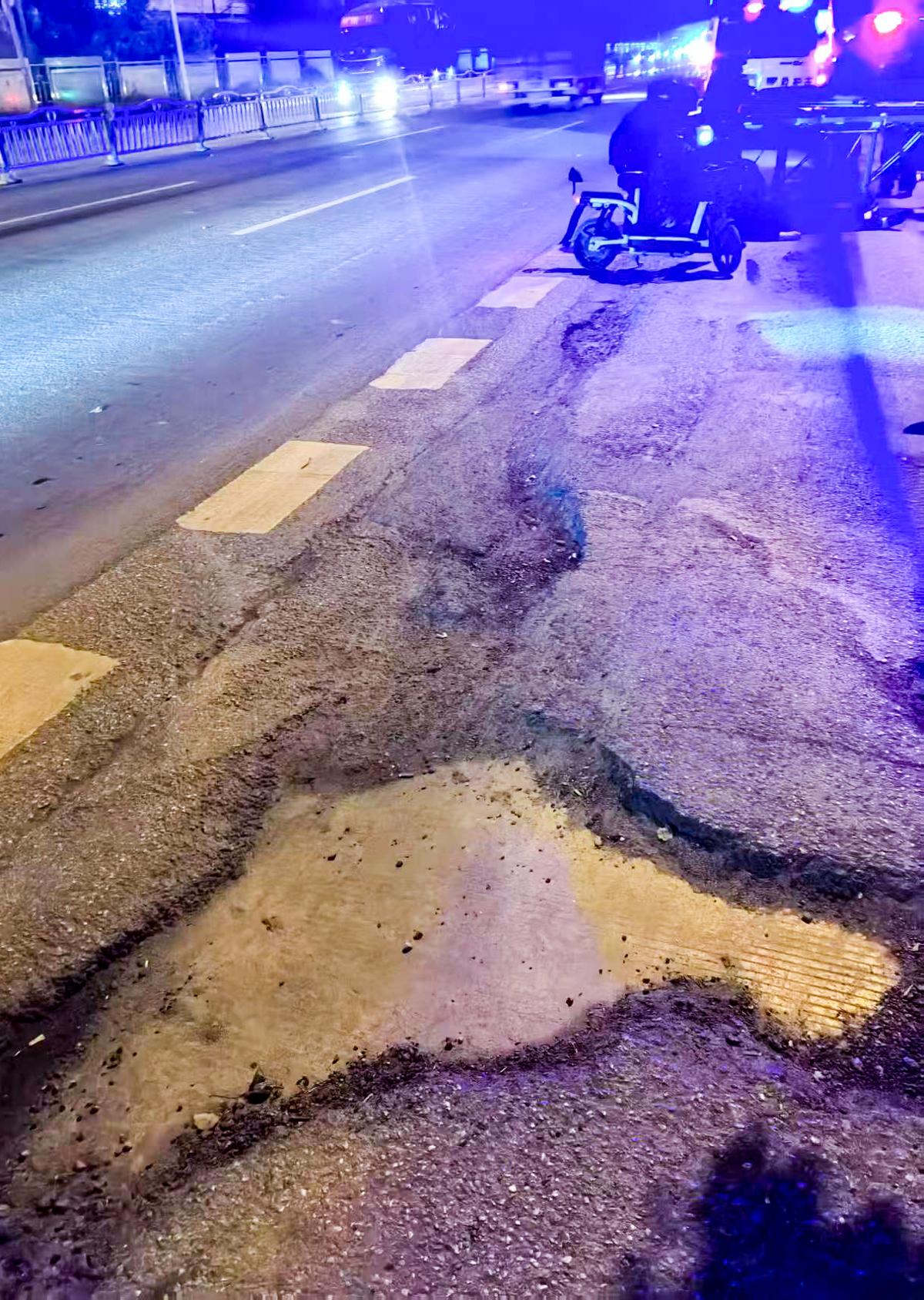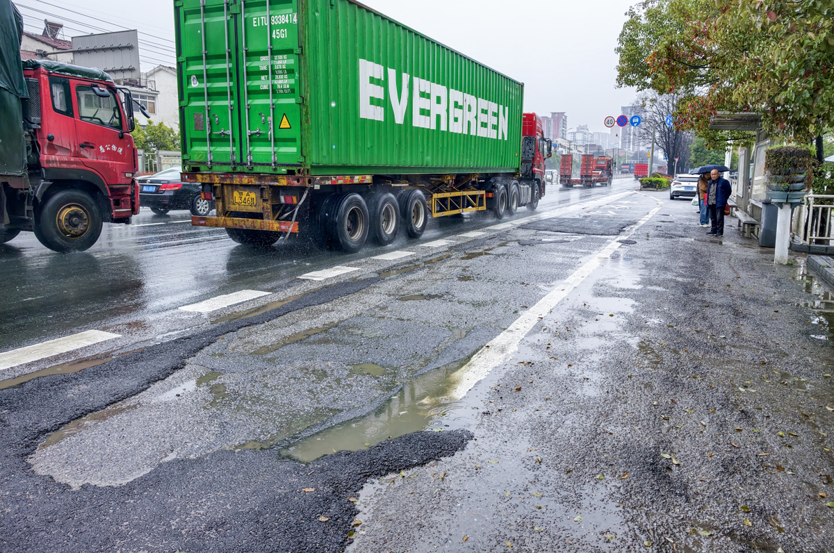 修复后的路面,补丁仍清晰可见