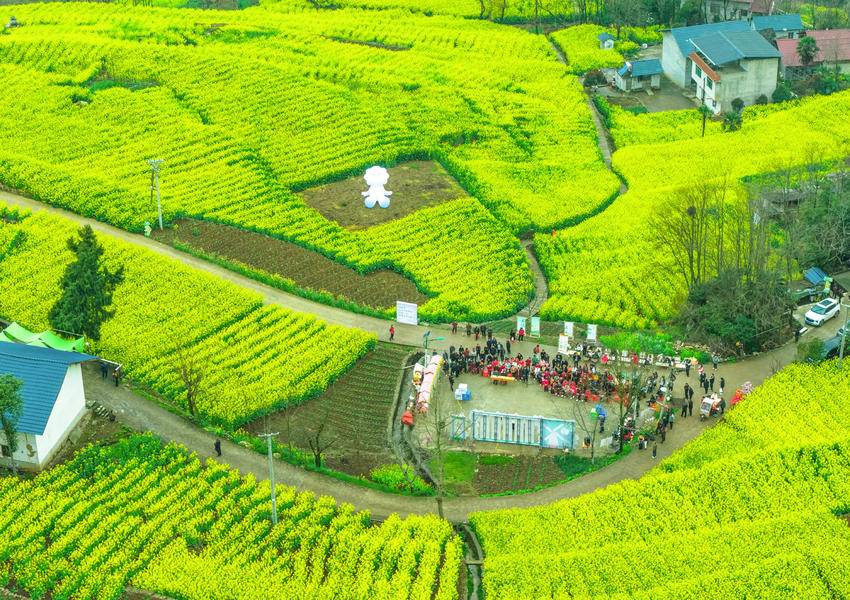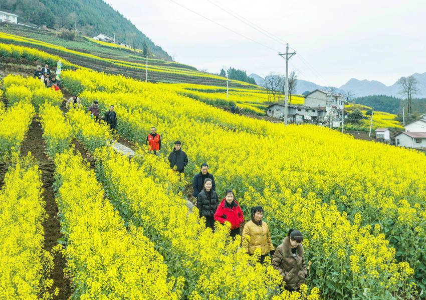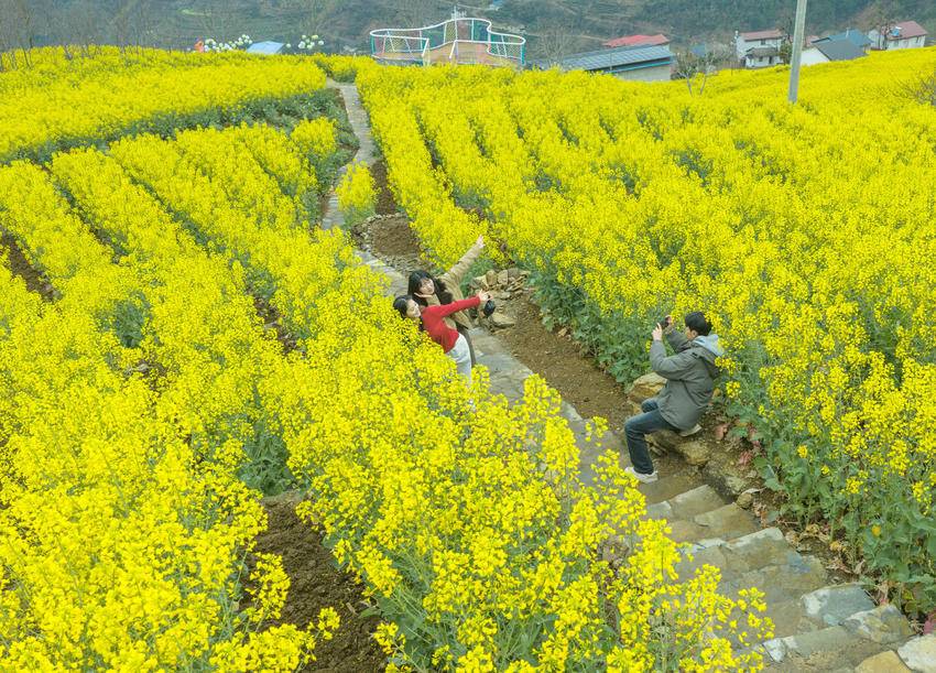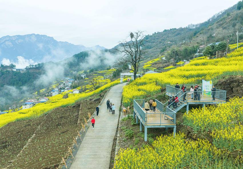 湖北日报客户端讯(通讯员王罡、周璐、谭倩)近日,三峡库区湖北省宜昌市秭归县的油菜花海进入盛花期,鎏金的花浪、蜿蜒的步道、错落的民居与游客的笑脸相映成趣,勾勒出一幅生机盎然的春日乡村新画卷。当地在规模粮油生产基地植入休闲观光平台、游步道等旅游基础设施,充分挖掘特色民俗文化,推动农文旅深度融合,发展现代农业,助力乡村振兴。