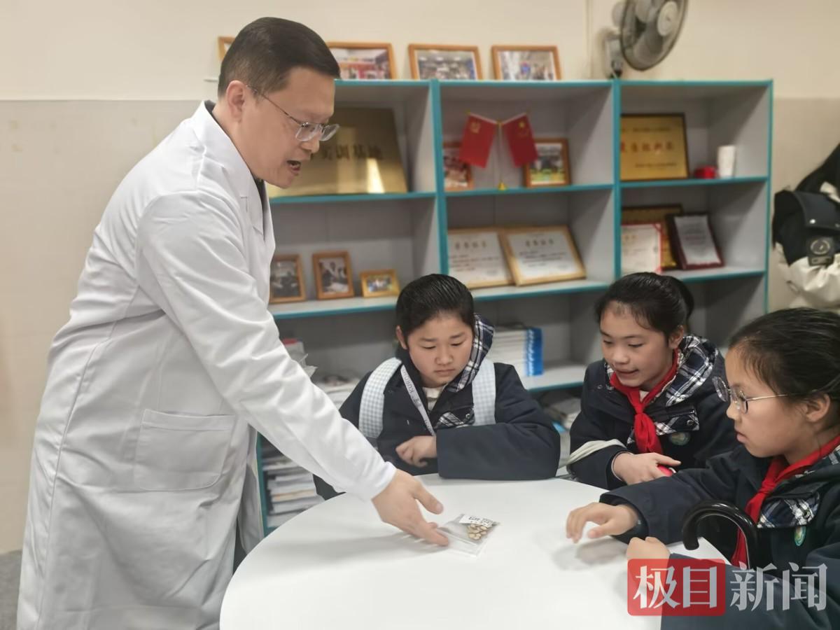 “甘草素有‘国老’之称,生长于土壤之中,味道甘甜,甜度可达白糖的50倍,兼具祛痰止咳、清热解毒、补脾益气、缓急止痛、调和诸药之效,对口腔溃疡、咳嗽等病症能起到不错的调理作用。”3月18日下午4时,咸宁市第二实验小学“中医少年堂”社团正式开课,南方中医门诊母连锦医生受邀走进校园,为42名热爱中医的学子带来了一堂干货满满、趣味十足的中医启蒙课,带领孩子们解锁中草药奥秘、体验传统中医技艺。