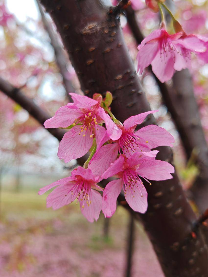 当地村民介绍,睡虎山的樱花近年每到三月中下旬,便是樱花盛开的时节。今年的春雨不仅没有冲淡樱花的娇艳,反而让花朵更加饱满,花期也有所延长。连日来,已有不少周边游客闻讯而来,在春雨中漫步樱林,感受这份独特的春日浪漫。