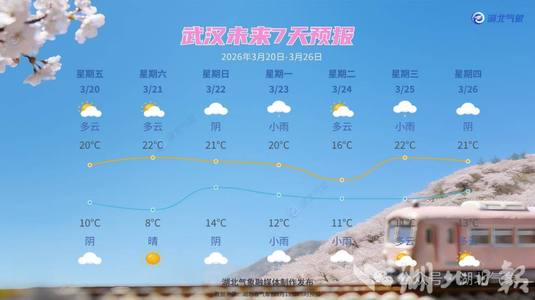 具体预报为:19日晚到周日白天,大部地区以多云到阴天为主,南部偶有短时小雨客串;周日夜间,全省将迎来一场小到中雨,恩施局地还可能遭遇大雨“突袭”。不过别担心,未来三天最高气温将稳稳站上20℃上下,东风拂面,春意渐浓。