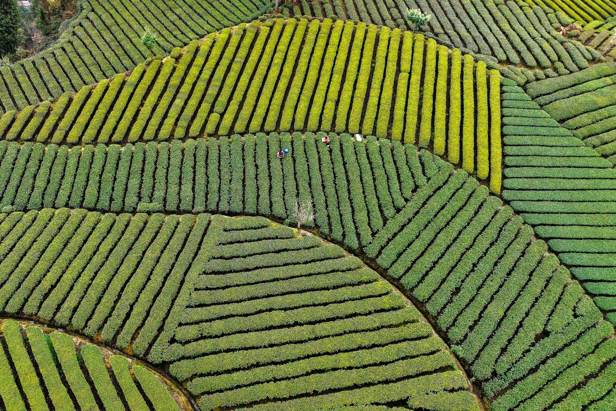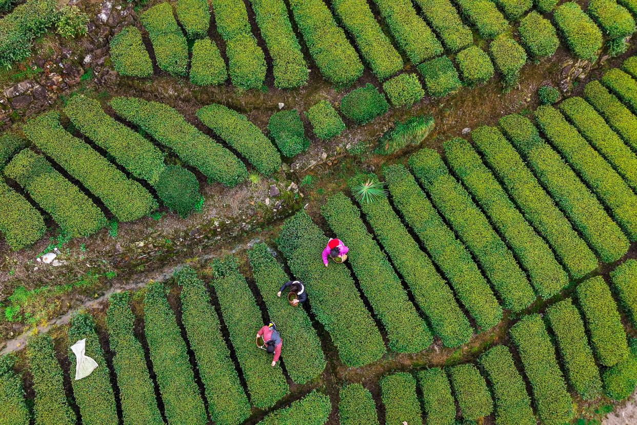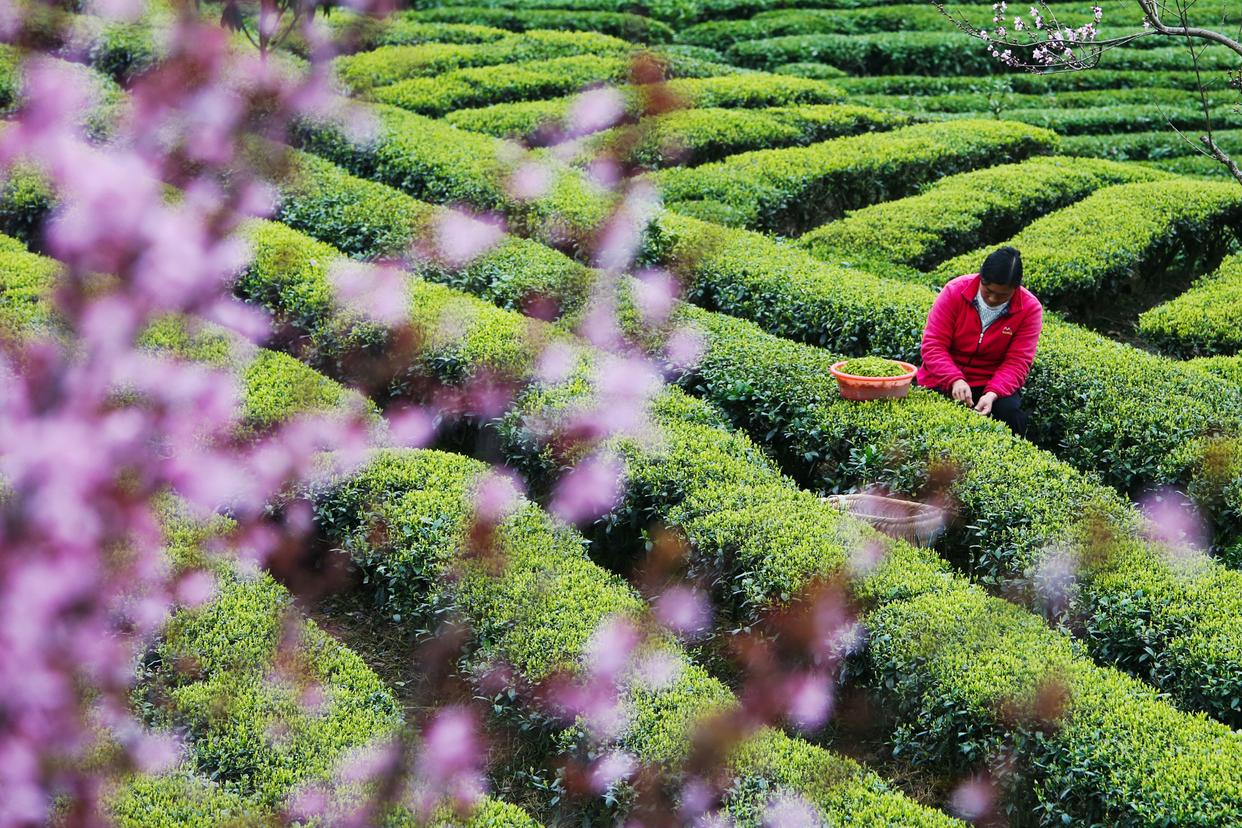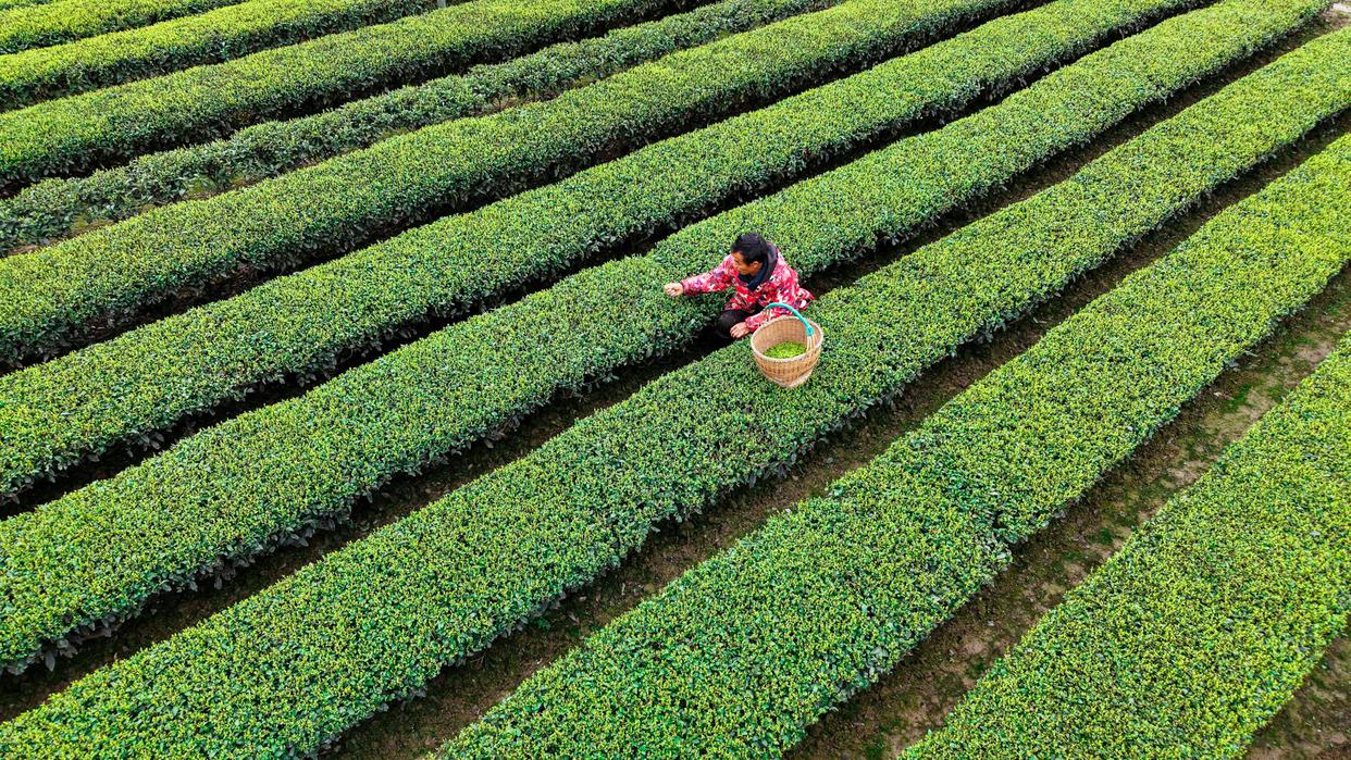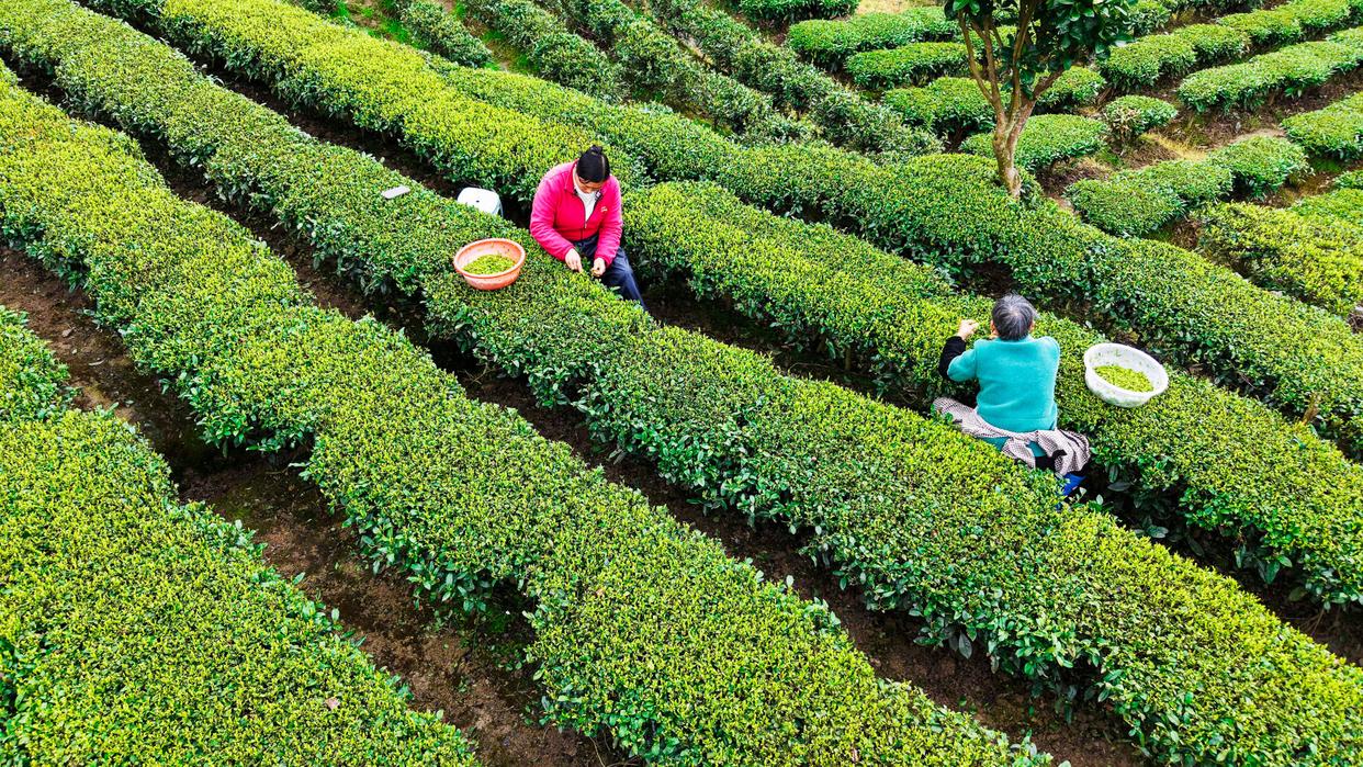 随着气温回暖,湖北省恩施土家族苗族自治州咸丰县万亩茶园相继进入采摘季,茶农抢抓晴好天气采摘明前茶,供应市场。