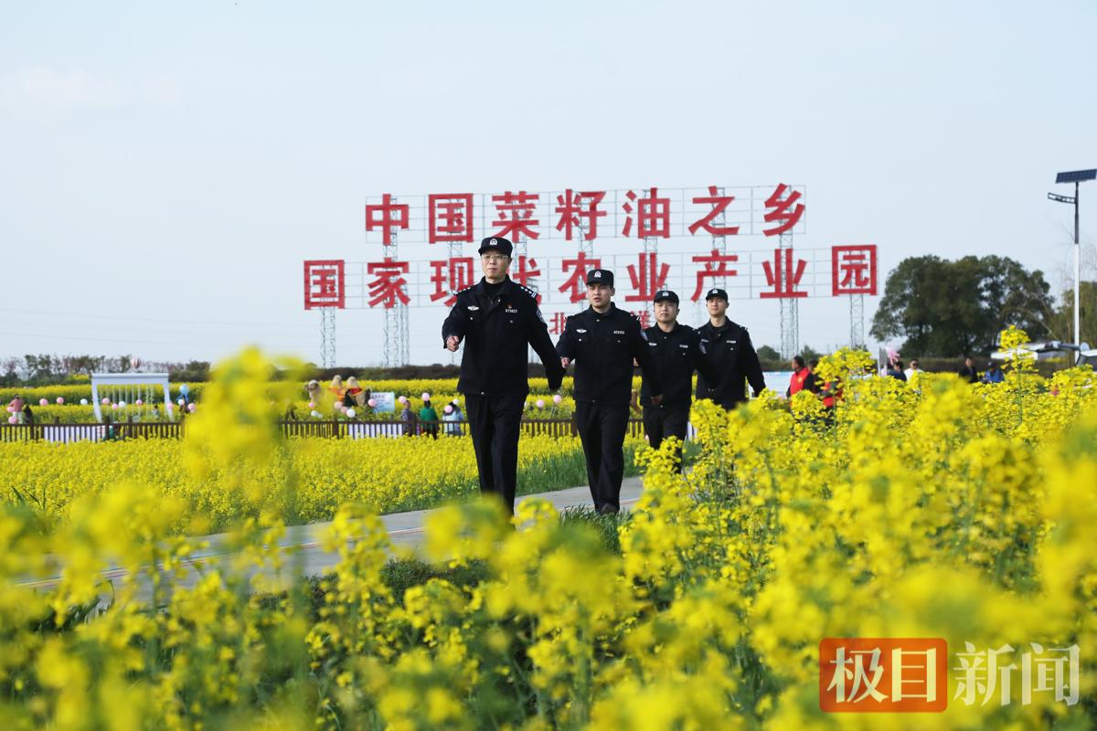 沙洋县公安局曾集派出所民警在张池村油菜花旅游景区巡逻