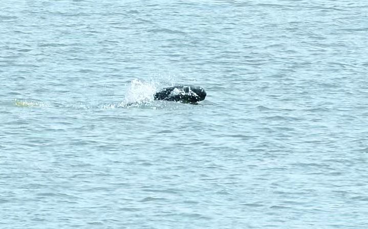 江豚戏水的画面。新华社发(金振强 摄)