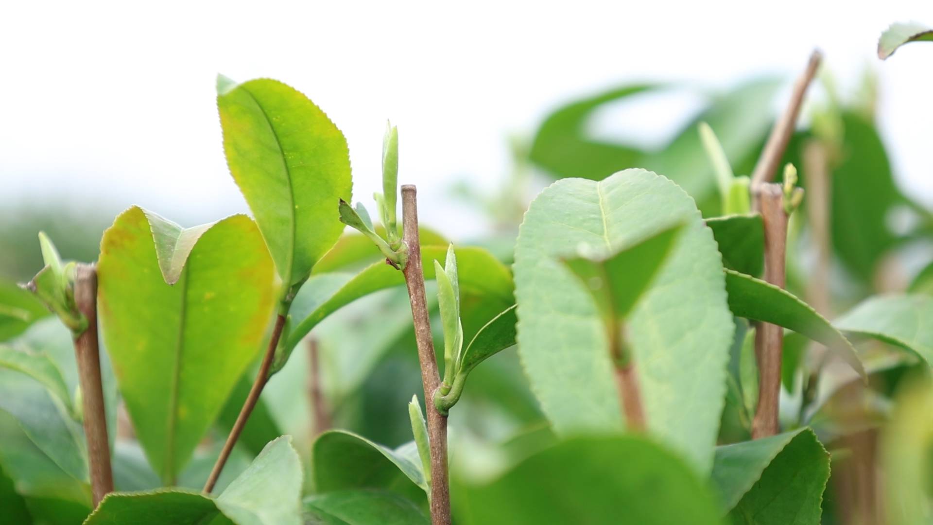 黄阿姨钻进茶垄,双手开始忙碌起来。她双手拇指与食指轻提,一芽一叶便落入手中,再顺势丢进腰间的竹篓,动作干净利落。