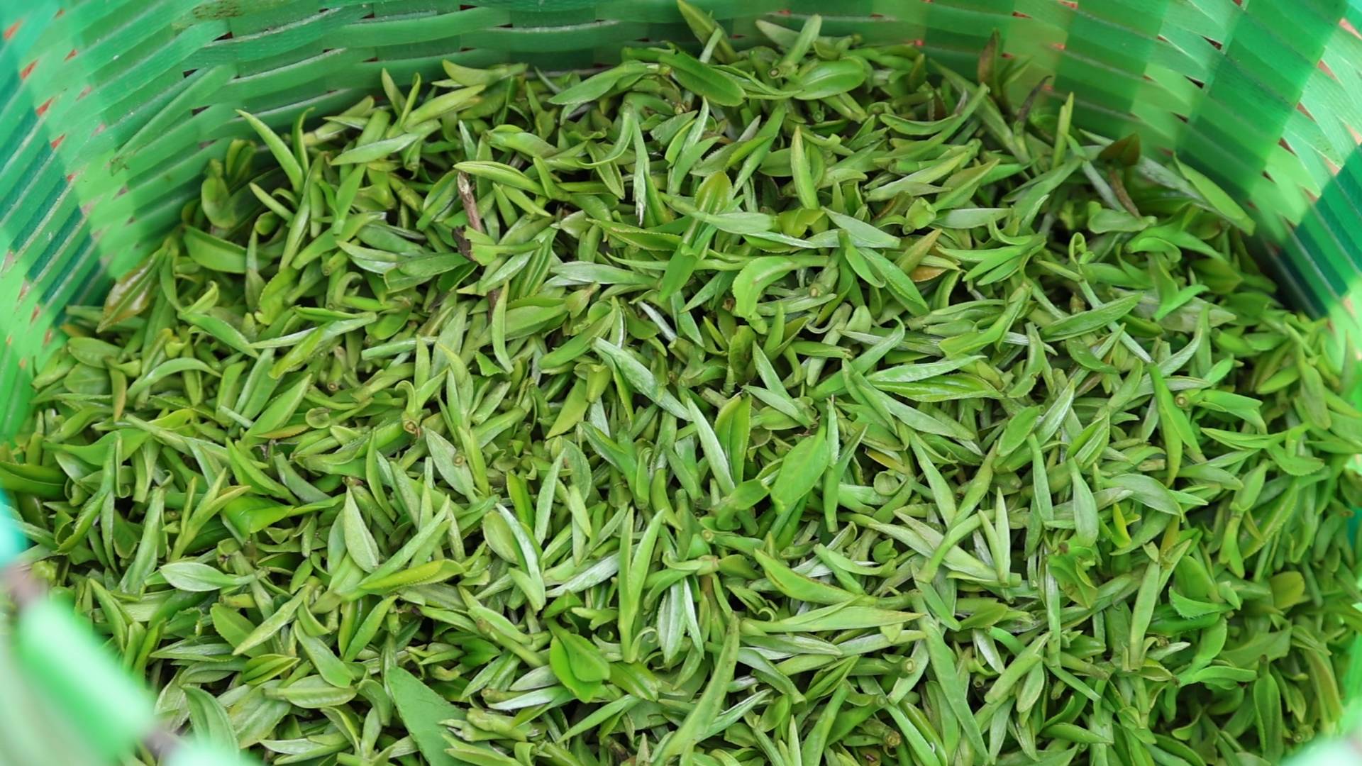 临近中午,阳光变得有些晃眼。采茶工们的茶篓已经有些分量了,嫩绿的芽叶在篓底铺了厚厚一层,透着清新的茶香。