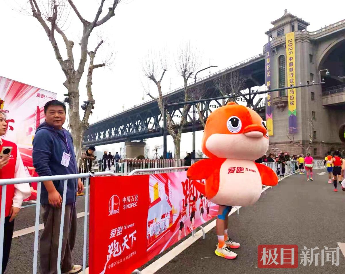 赛道上,一个憨态可掬的橘色“江豚”人偶化身“生态使者”,与选手击掌互动,传递长江大保护理念。扮演“江豚”的中南民族大学研究生付子寒,曾服役于四川阿坝州武警部队并参与抢险救灾。“我是荆州人,对长江有着深厚情感,希望通过我的参与,让更多人加入守护长江的行列。” 付子寒说。