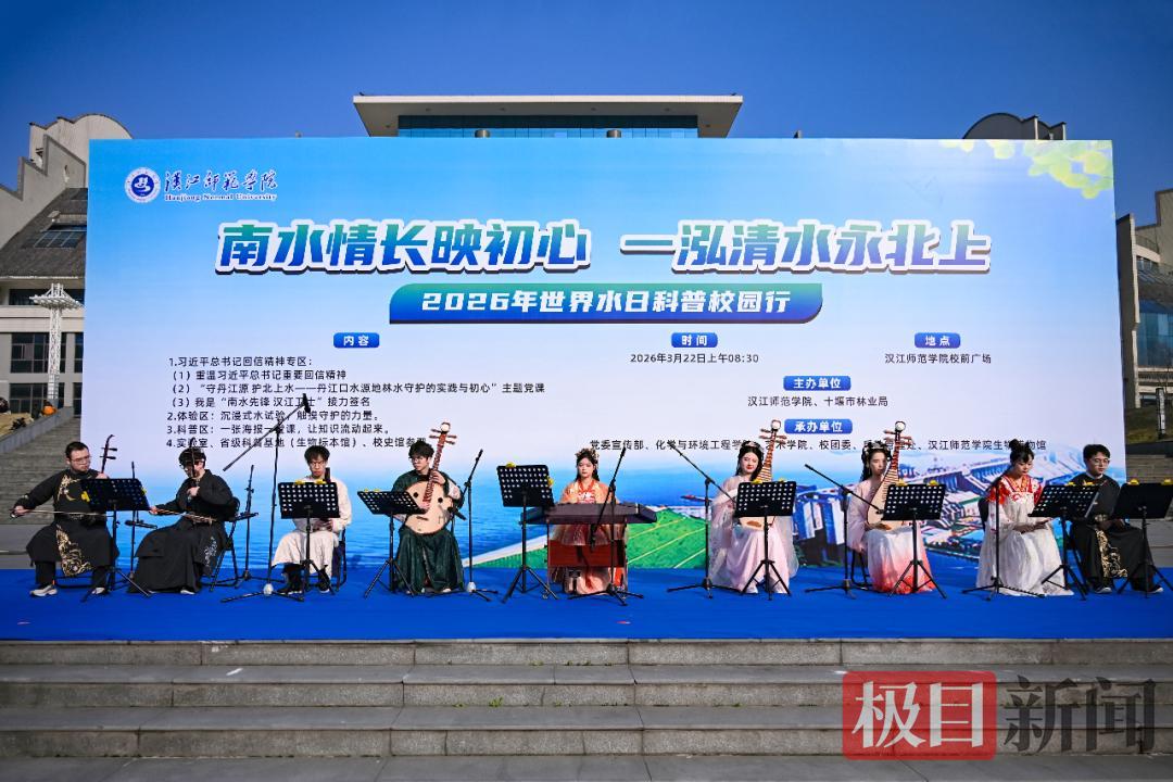 3月22日,第34届“世界水日”,汉江师范学院与十堰市林业局联合举办“南水情长映初心 一泓清水永北上”主题科普展示暨守水护水主题党日活动。千余名师生、市民及中小学生参与其中,在艺术展演、科普实验、主题党日等环节中,沉浸式感受水生态保护的重要性。