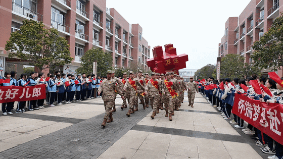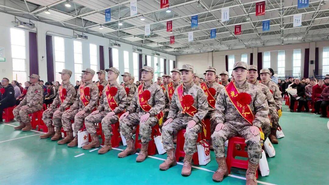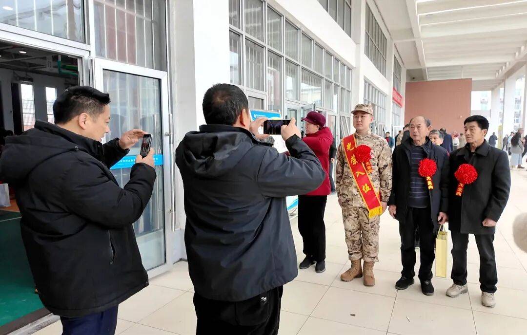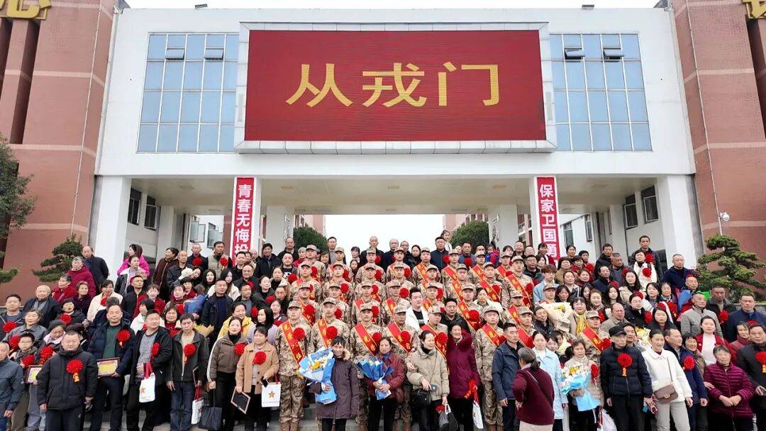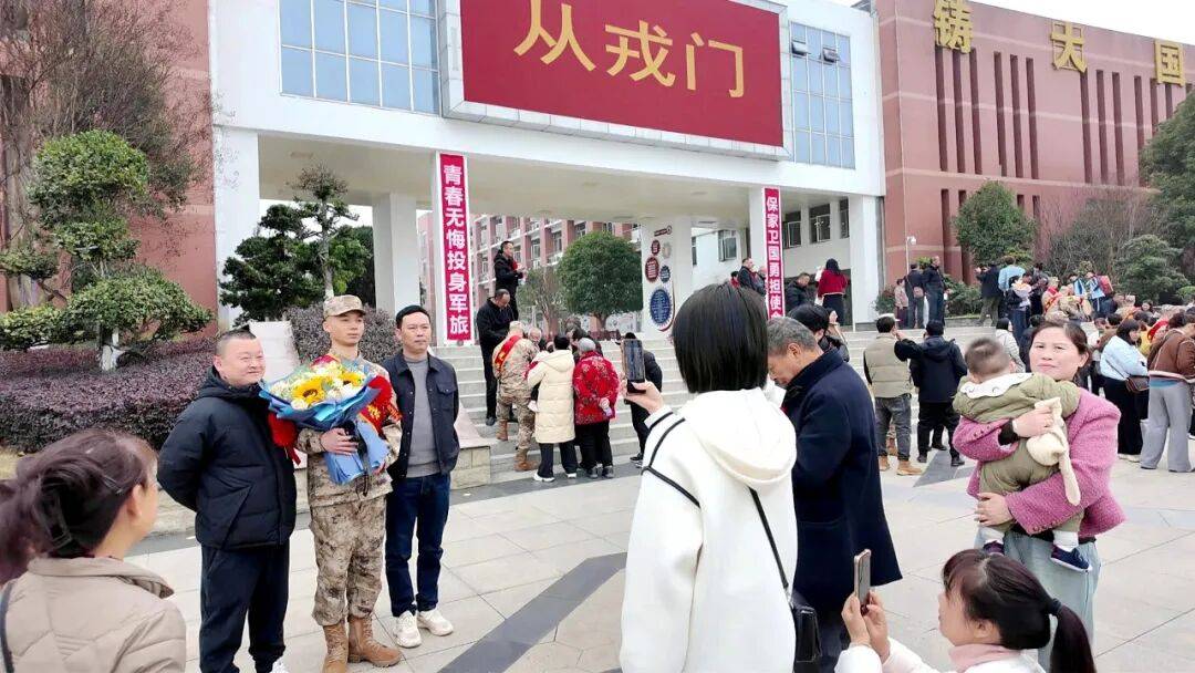 欢送会现场,新兵家属们亲手为孩子佩戴红花、整理绶带,眼神中既有不舍,更有骄傲与期许。雄壮的国歌声奏响,全场肃立致敬,浓厚的崇军尚武氛围令人动容。这些年轻的枝江男儿,以昂扬斗志扛起青春担当,用热血选择书写忠诚,成为了家乡人民的骄傲。