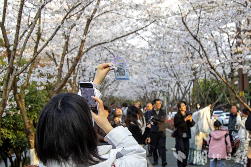 湖北日报客户端讯(通讯员 谭华 )3月20日,市民游客在恩施市城区亲水走廊带状公园内观赏樱花、游玩拍照。