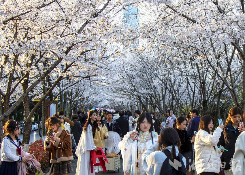 春分时节,恩施市城区清江河畔亲水走廊带状公园内的樱花迎春绽放,呈现出一片生机勃勃的春日景象,吸引市民游客前往踏春赏花,打卡拍照,乐享春日好时光。