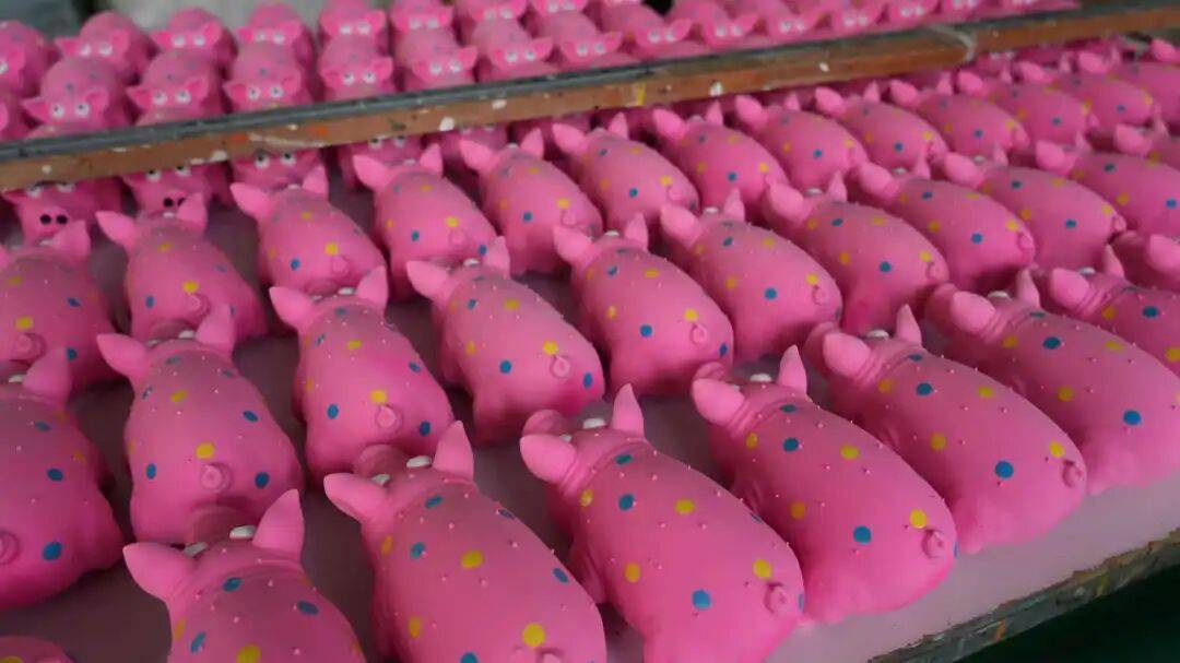 自2012年成立以来,鸿荣盛深耕宠物玩具领域,形成了从研发、生产到出口的完整产业链,产品全部销往欧美国家。多年来,在沃尔玛宠物玩具销量前十榜单中,总有2至3款产品出自鸿荣盛。一款售价0.6美元的猫用冰淇淋玩具,一个月就发出10个货柜;一只内置响纸的狐狸狼玩具持续热销四年;一只憨态可掬的乳胶猪连续三年稳居沃尔玛宠物玩具销量榜首。