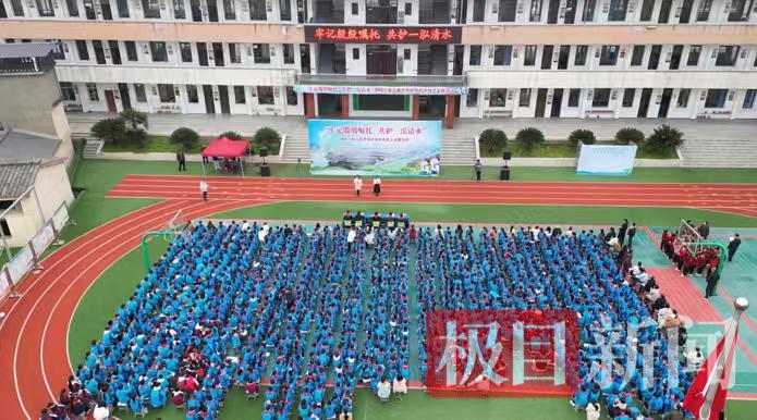 在羊尾镇,少先队员与安康市白河县城关初级中学连线,表演舞蹈《绿水和青山的童话》《生命之源》,共同宣读《青春护水倡议书》,并踊跃分享家庭节水妙招。活动期间,羊尾镇初级中学少先队员还前往江滩公园开展垃圾捡拾志愿服务。“同饮一江水,鄂陕一家亲。当好守井人,护好一江水。”羊尾镇中心小学学生表示。