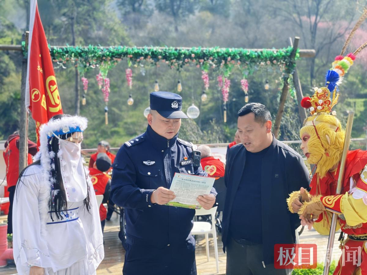 3月24日,春光正好,在百花竞放的湖北省十堰市茅箭区秦巴植物园,一场别开生面的反诈宣传正在上演。