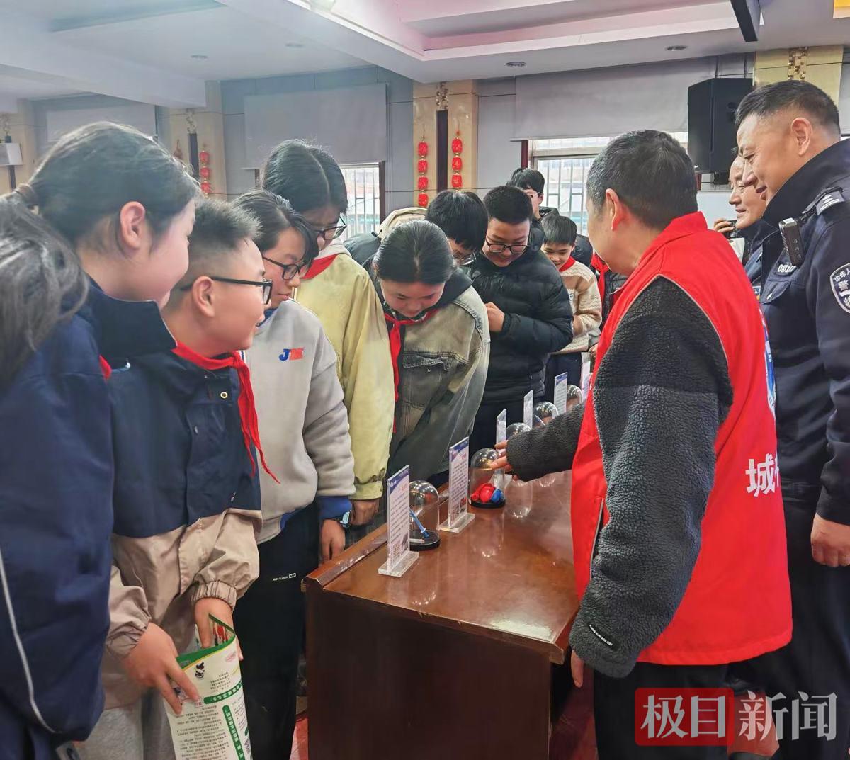 现场,同学们每答对一题,民警就会为同学佩戴一枚精美的“禁毒小卫士”徽章,在争当“禁毒小卫士”的热潮中,安全防范的种子悄然扎根。