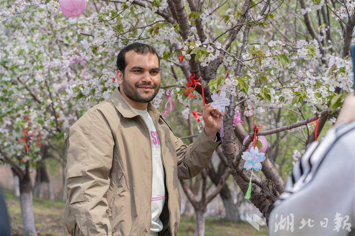 留学生“打卡”樱花节。通讯员 刘铮 摄