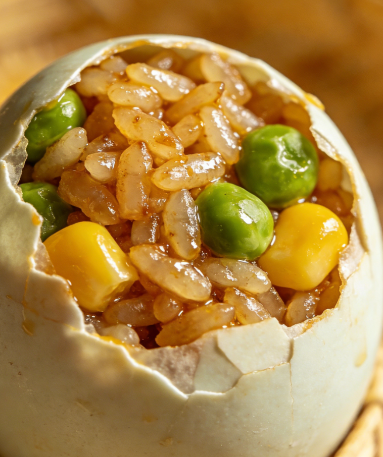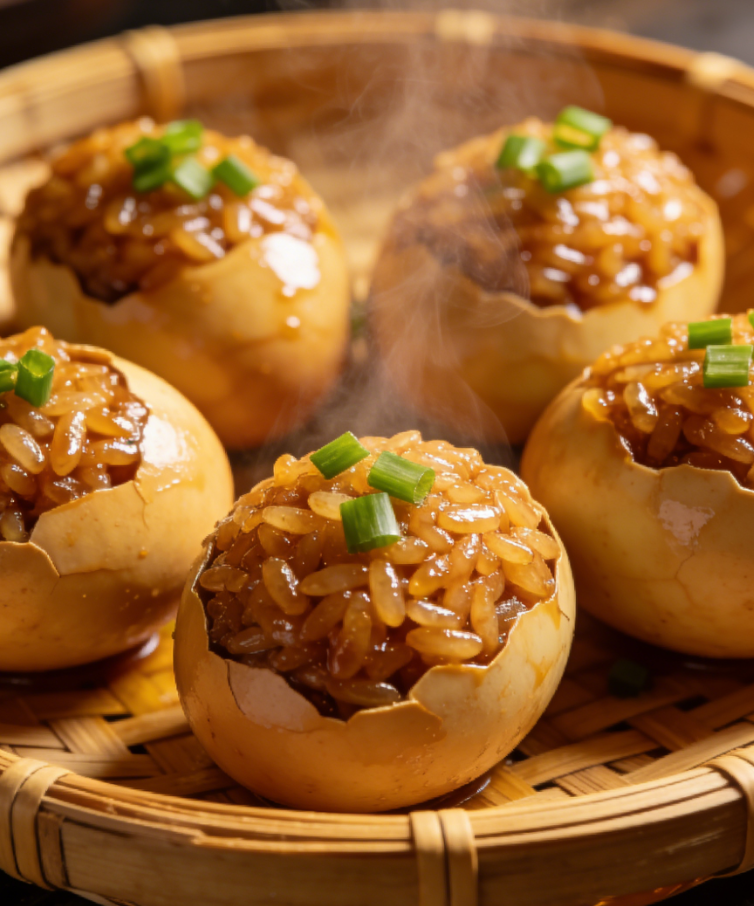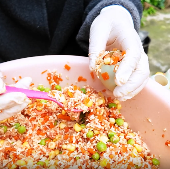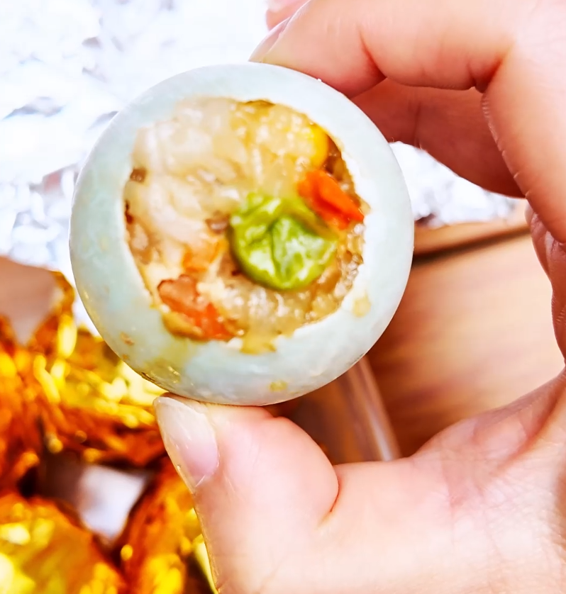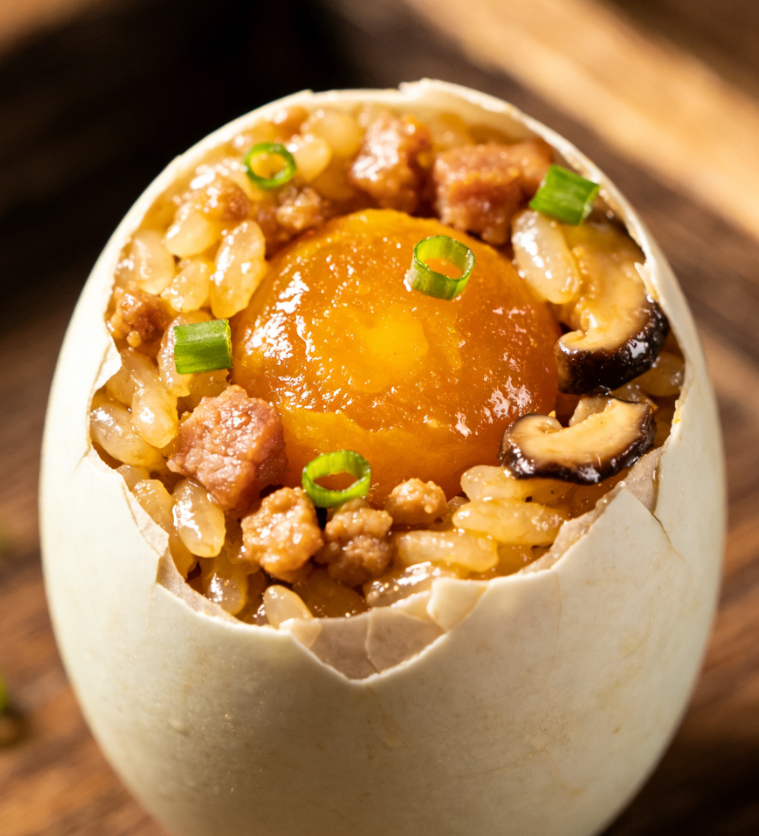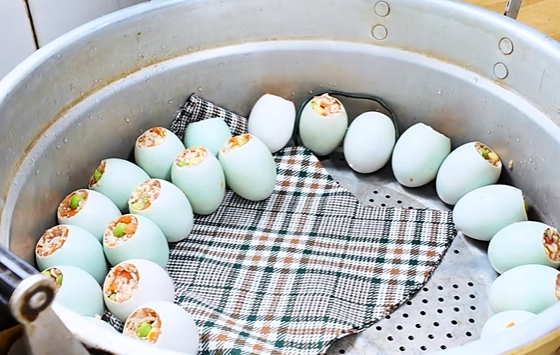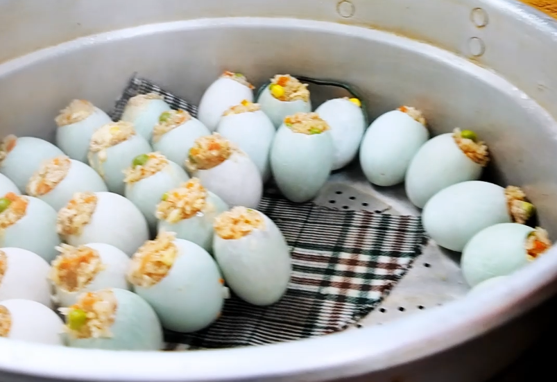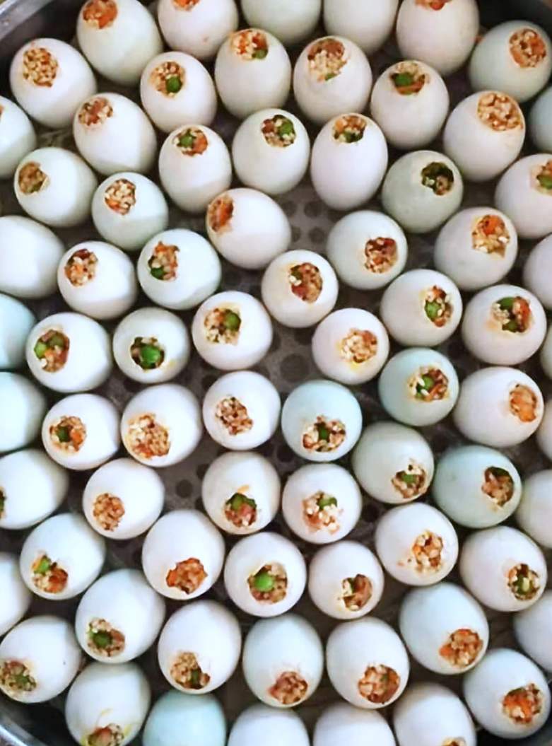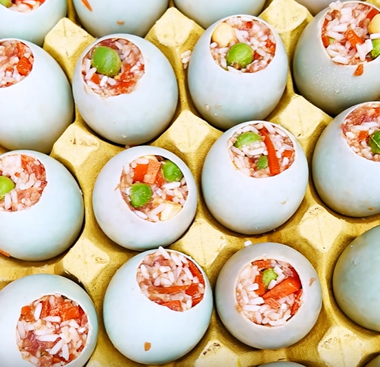 精心调味后填入掏空的鸭蛋中