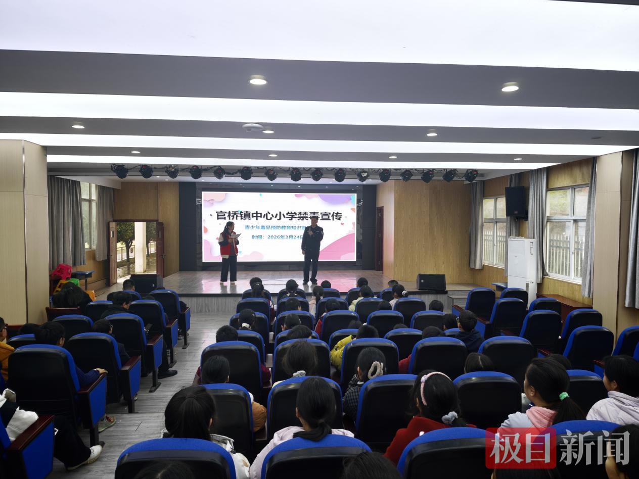 为筑牢校园禁毒安全屏障,增强青少年识毒、防毒、拒毒意识和能力,呵护未成年人健康成长,3月24日,嘉鱼县公安局官桥派出所民警联合官桥镇戒毒中心工作人员,走进官桥镇中心小学,开展主题禁毒宣传教育活动,以沉浸式、立体化的宣教形式,为在校学生送上一堂生动深刻的禁毒安全课。