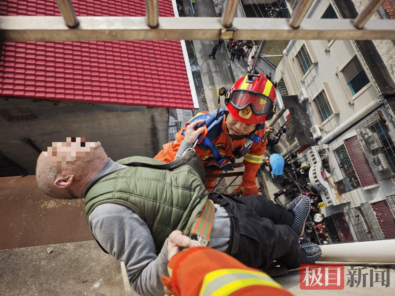 3月25日8时许,湖北省洪湖市某居民楼发生惊险一幕:一位老人从家中阳台坠落,身体悬挂在高层楼体的防盗网与落水管之间,情况万分危急。