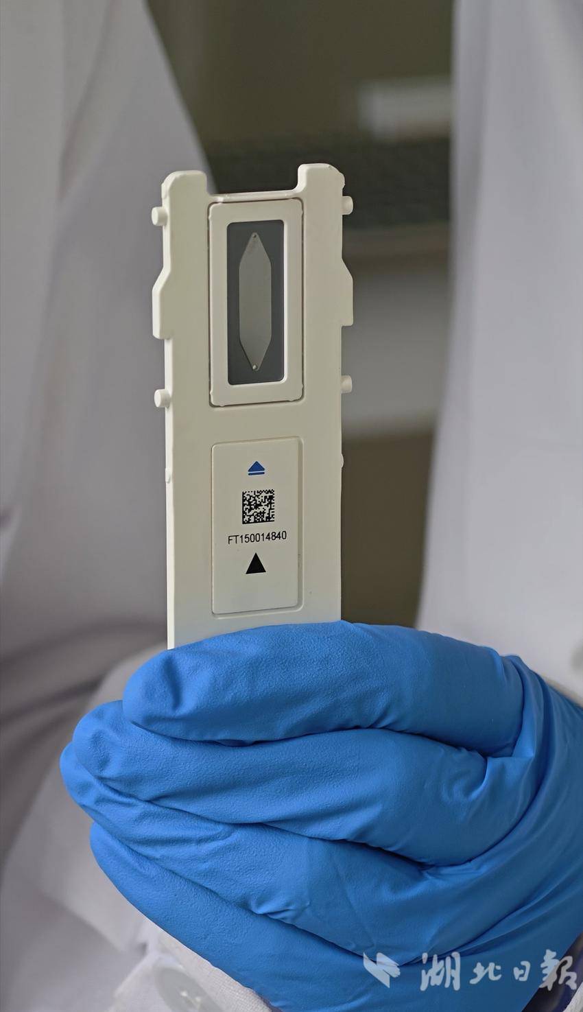 在高通量测序仪器旁,记者见到了部长“同款”芯片,大小仅如成人食指。“别看这芯片不大,里面可以容纳500个样本。”吴冬晴介绍,只需将芯片和测序试剂盒放进该仪器,12小时后,测序数据就会自动上传并分析出结果。