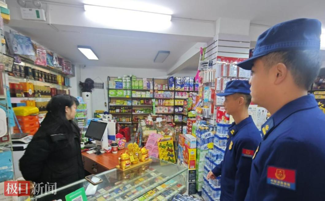 除了帮助查改隐患,消防宣传员还将“消防课堂”搬到了店铺门口。“使用灭火器要牢记‘提、拔、握、压’四字口诀,站在上风方向,对准火焰根部喷射……”在临时设置的教学点前,他们拿起干粉灭火器,向围观的商户和过往群众演示操作步骤。