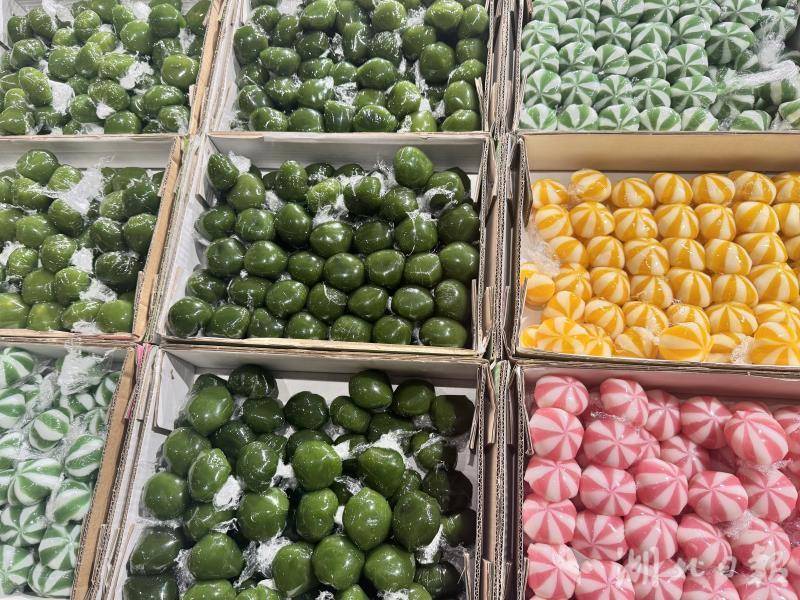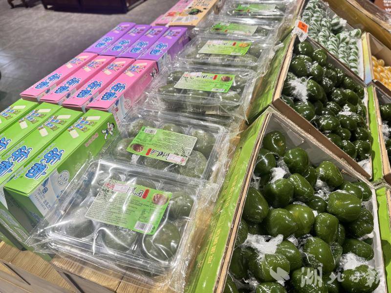 在天城镇某超市内,商家专门开辟了青团专属置物区,圆鼓鼓的青团整齐码放,五颜六色的外观格外吸睛。经典的青绿色豆沙青团、清新的绿白红豆青团、明亮的嫩黄凤梨青团、软萌的粉白乳酸菌青团……多种口味琳琅满目,仿佛把整个春天的色彩都揉进了这小小的团子中。