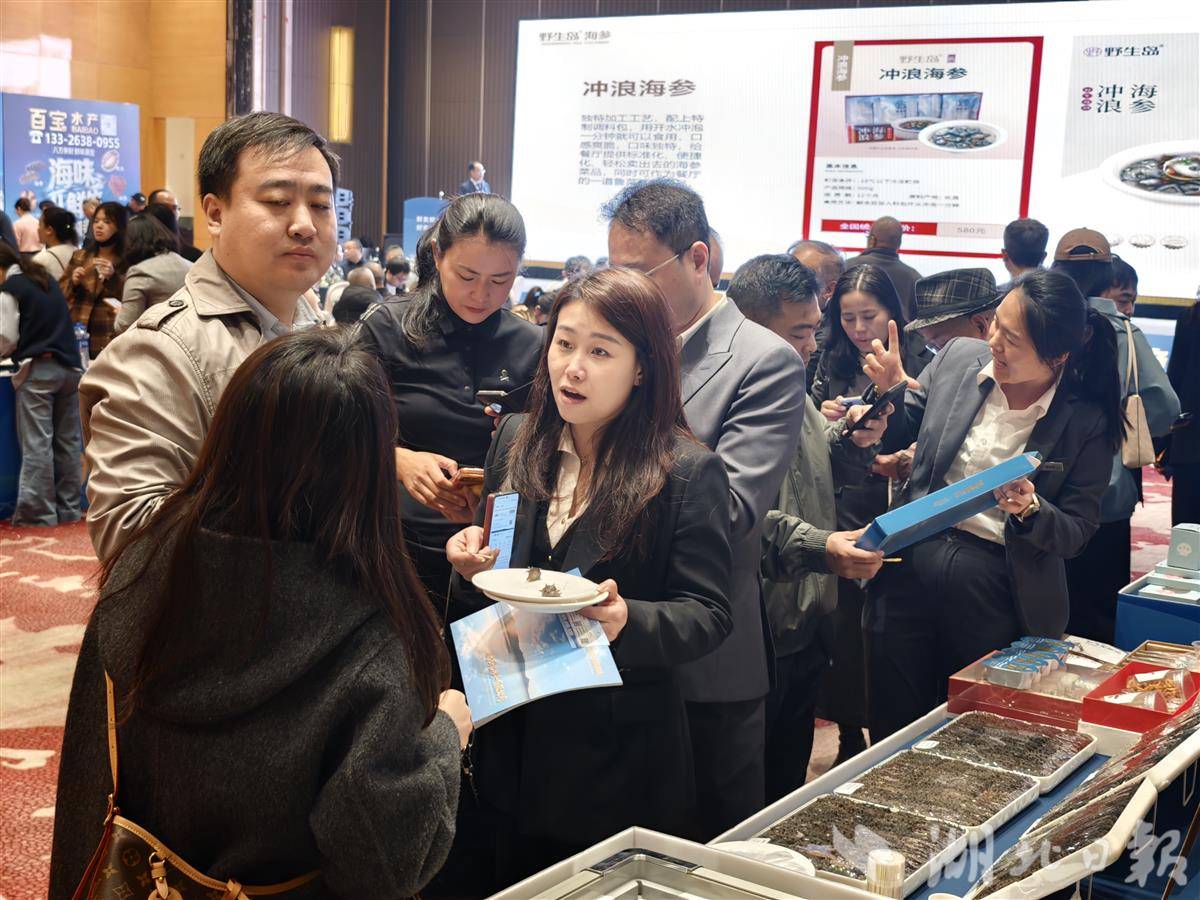 湖北日报讯(记者杨然、通讯员王姝婕)3月27日,以“鲜美烟台好海好鲜”为主题的2026烟台海参产业精准对接活动在武汉举办,烟台海参、鲍鱼、海鲜水饺等名优产品集中亮相,吸引武汉及周边地区500余家商超采购总监、水产批发商、高端餐饮负责人、滋补品专营店采购代表观摩并洽谈合作。