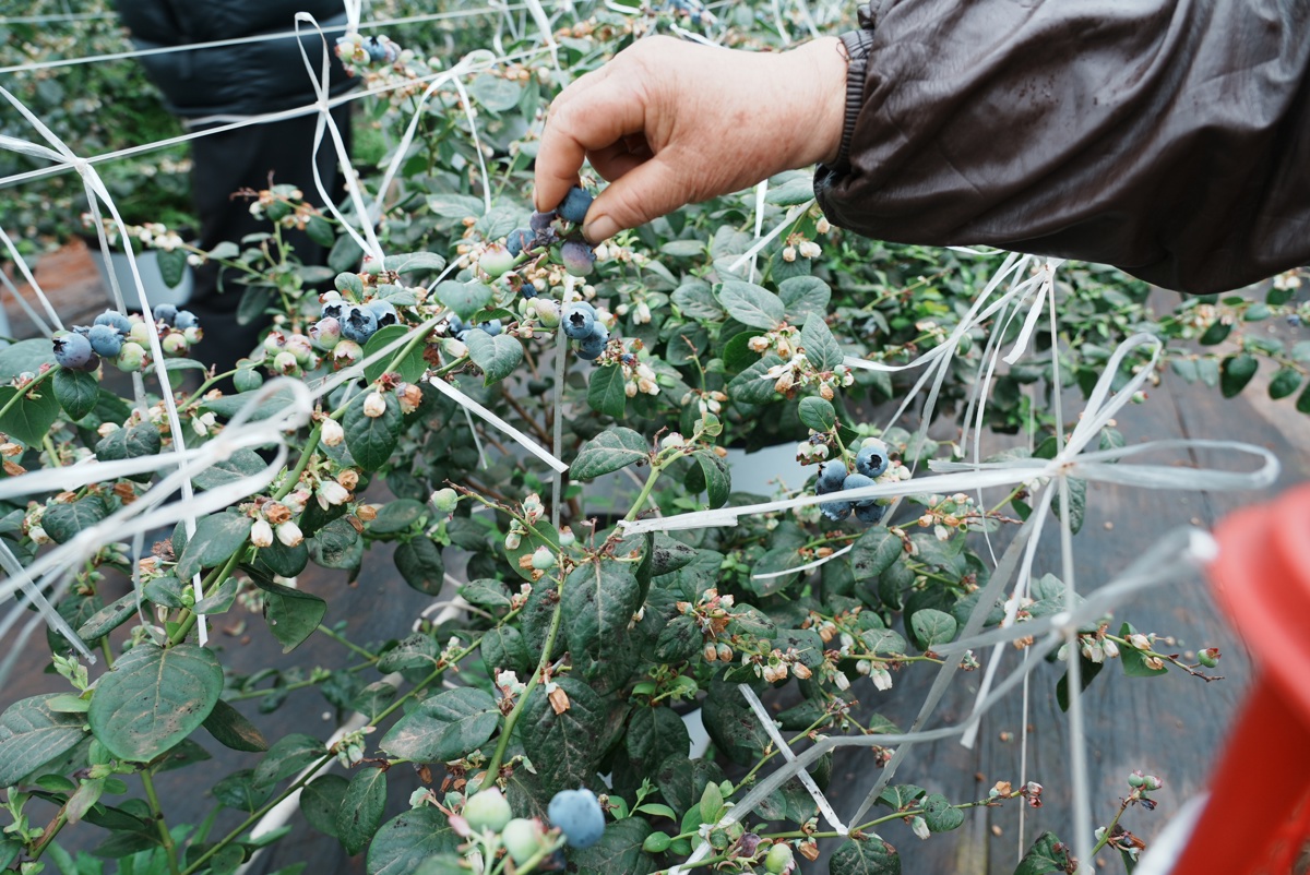 更关键的是智慧农业系统的应用。罗川翔指着田间的传感器说,这套水肥一体化系统通过物联网监测,能根据温度、湿度、光照等条件,自动精准地给每一盆蓝莓浇水施肥。“不仅能节水70%以上,还能让蓝莓‘吃饱’不浪费,‘喝好’不超量。”通过这种精细化管理,种出的蓝莓果粒大、果粉厚、花青素含量高,口感比较甜。