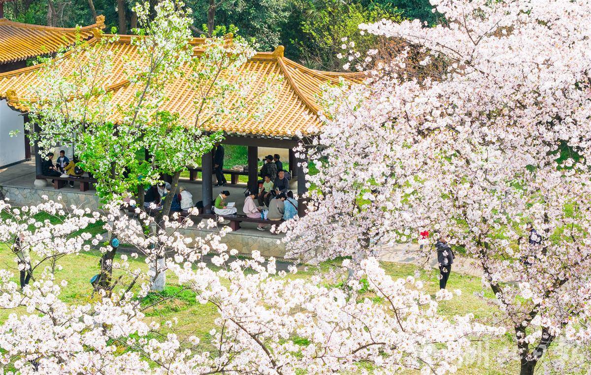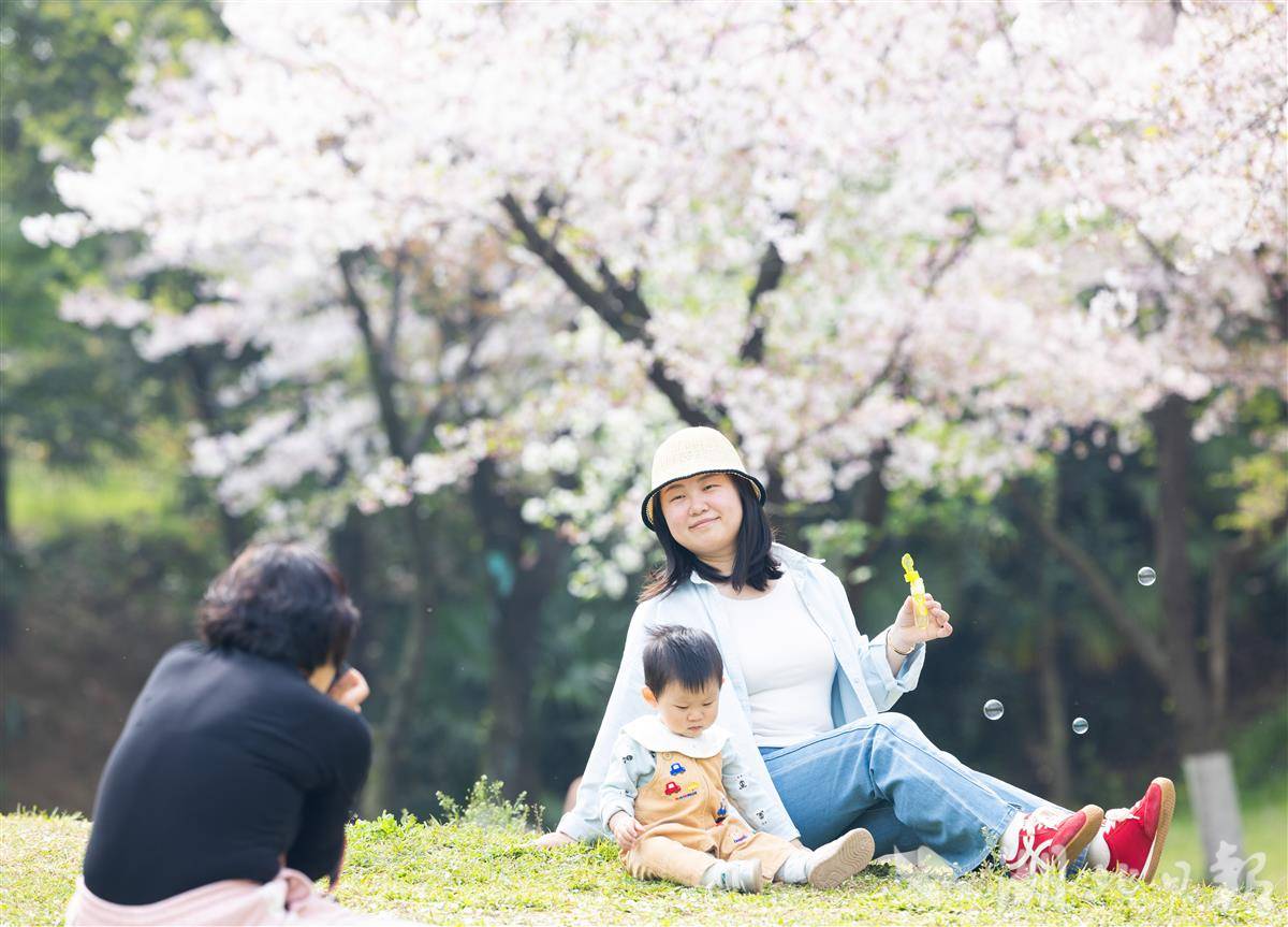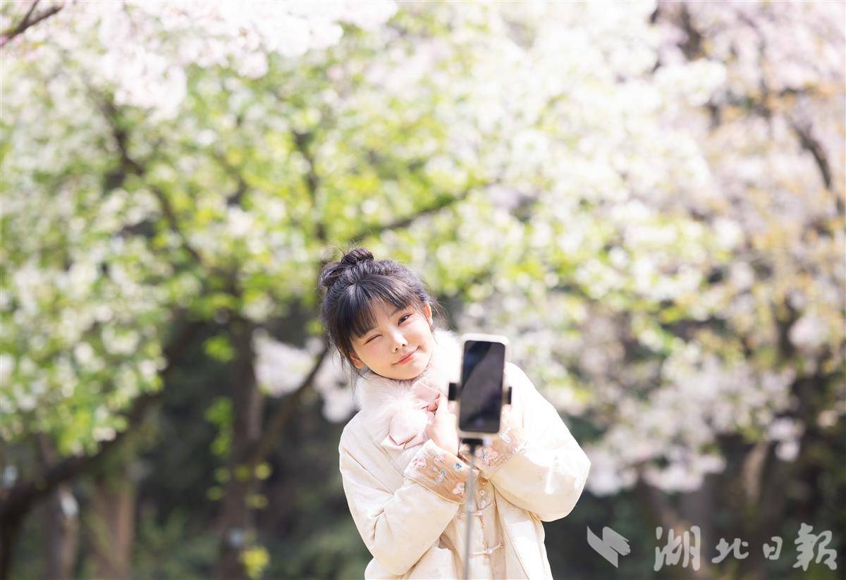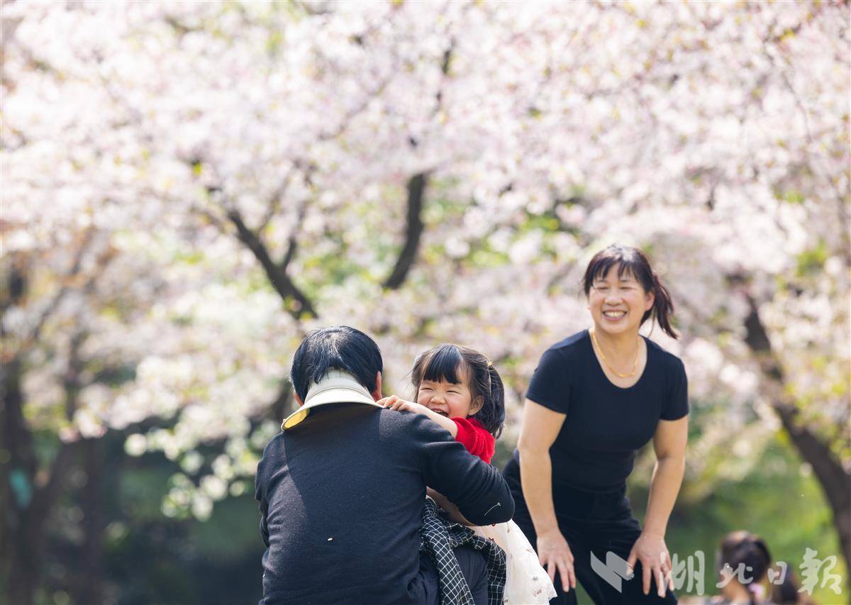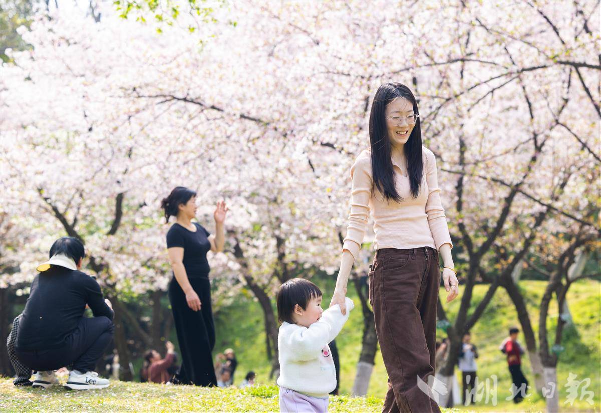 3月28日,武汉青山公园2万平方米樱花竞相盛放,粉白花海蔚为壮观,市民游客樱花树下花式打卡,乐享春光。