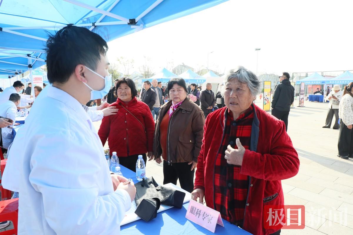 眼科义诊台前,专家为群众进行视力检查和眼底筛查,普及白内障、青光眼等眼病防治知识,提醒大家关注眼部健康。