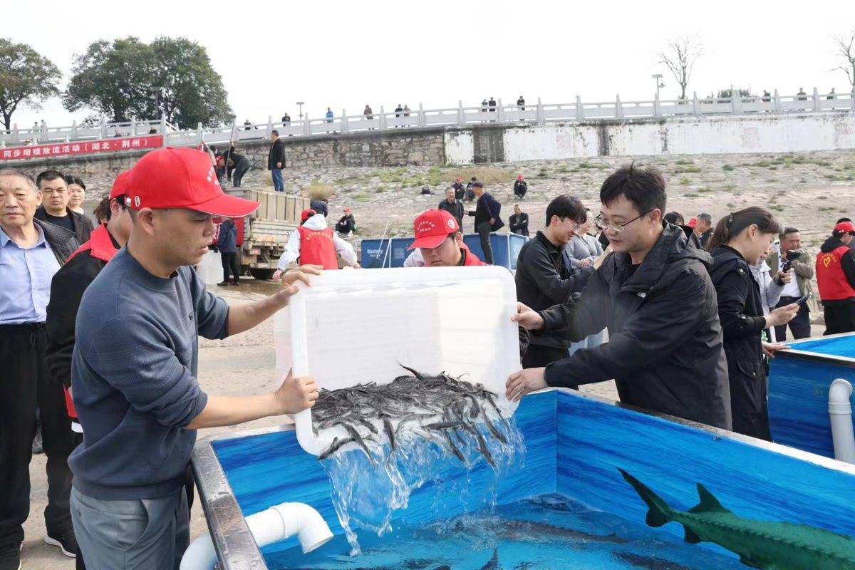 湖北日报讯 (记者刘胜、通讯员王珂)2026年3月28日是第六个“中华鲟保护日”。荆州市水生生物增殖放流广场,50余万尾中华鲟,从这里游向它的故乡、栖息地——长江。当天上午9点,农业农村部组织在湖北荆州、宜昌,上海崇明同步开展中华鲟增殖放流活动,现场共放流中华鲟数量约55万尾。