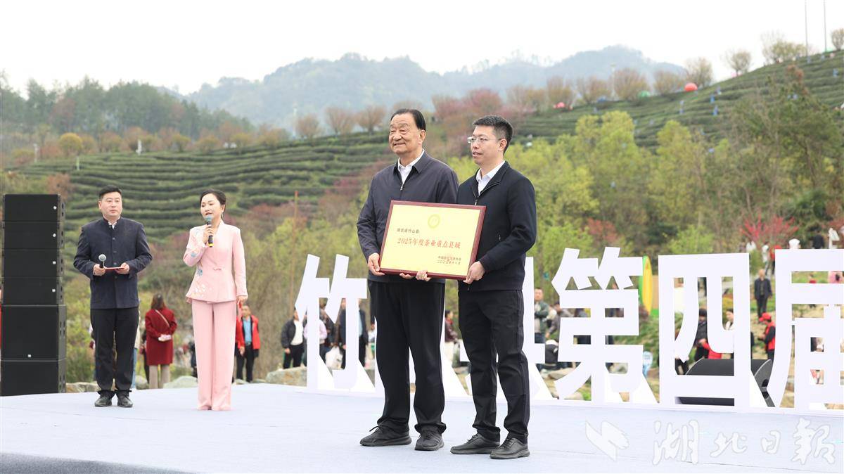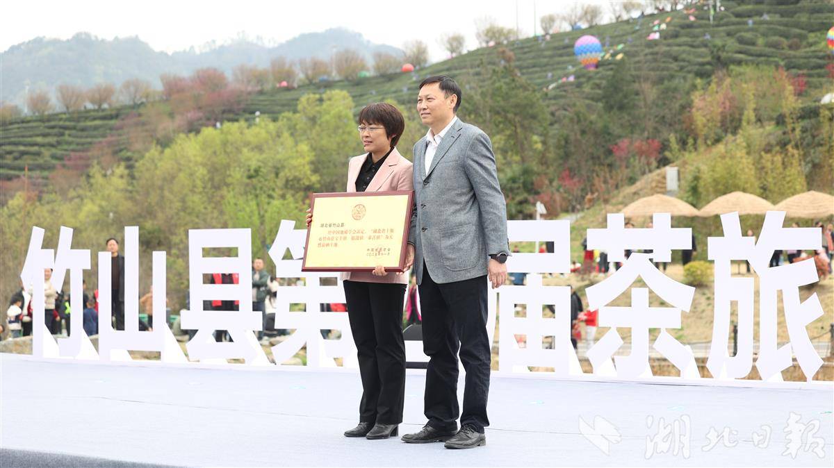 中国茶叶流通协会为竹山县颁发“茶叶重点县域”证书。(湖北日报通讯员 张成 摄)