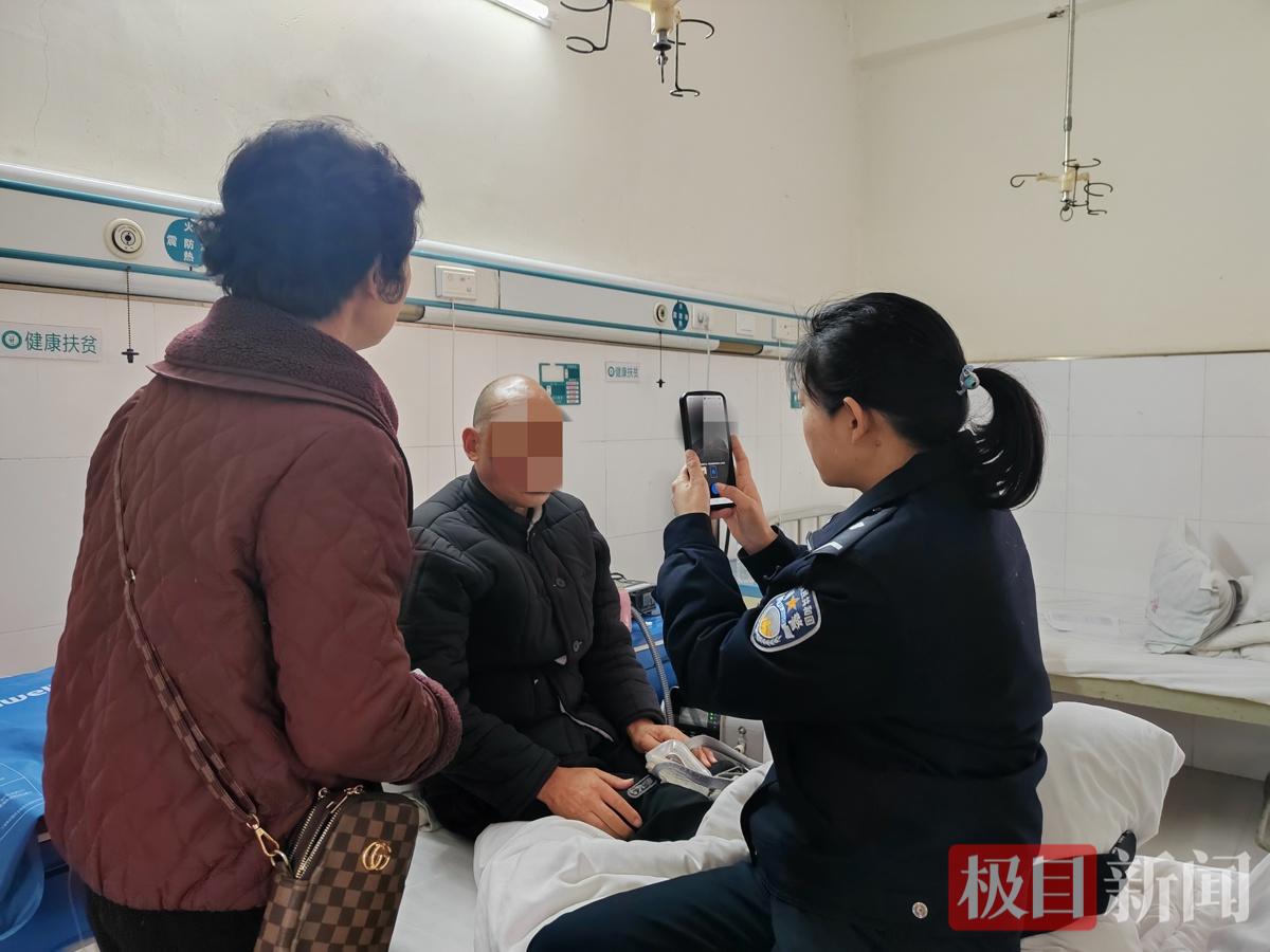 民警在病床前帮老人采集身份证照片(通讯员 供图)