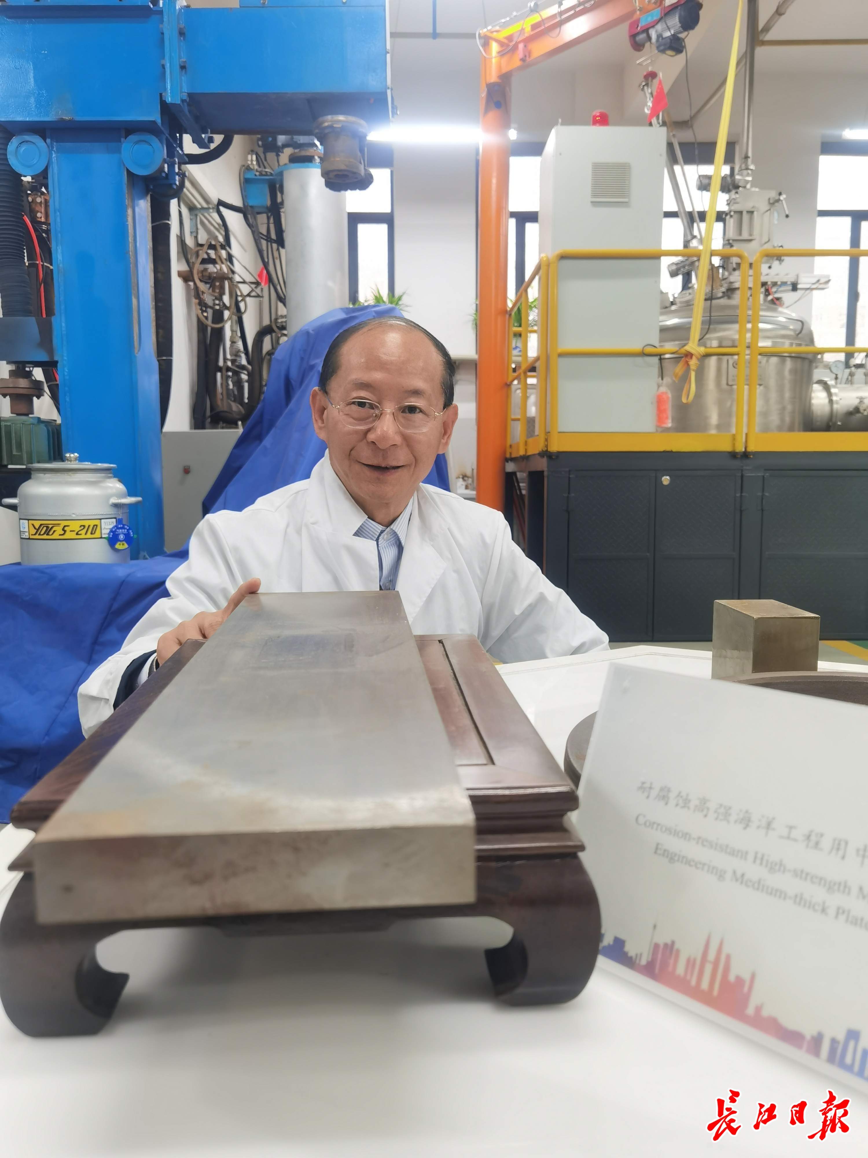 吴开明教授查看炼出的“极地钢”。记者杨佳峰 摄